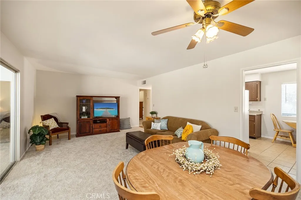 Updated Sun City Home Bonus Spaces, Fresh Upgrades & Resort-Style Amenities. Welcome to this beautifully refreshed ranch-style home in the desirable 55+ community of Sun City, located in the growing city of Menifee. With 2 bedrooms, 2 bathrooms, and over 1,140 sqft plus bonus areas, this home offers comfort, flexibility, and charm. Inside, youll find brand new carpet and interior paint throughout, a spacious living room, and a bright kitchen with a breakfast nook and included refrigerator. The kitchen and bathrooms feature tile flooring and new recessed lighting, while the bathrooms have newly glazed countertops and shower/tub areas for a clean, updated look. The layout includes one bedroom in the front of the home, positioned right next to a full bathroom, and a private primary suite in the back with a walk-in closet, sitting area, and a bathroom with a walk-in shower. A standout feature is the enclosed lanai (~200 sqft), which is now part of the main home with its all-new paint and carpetperfect as a sunroom, craft space, or cozy retreat (owners believe this space is in addition to the listed square footage). The attached 2-car garage also includes a spacious workshop (~245 sqft) where the washer and dryer (included) are locatedan incredibly versatile bonus space that everyone loves when they see it. Outside, enjoy mature water-wise landscaping and two charming backyard shedsideal for gardening, hobbies, or extra storage. Plus the home was recently replumbed last year and received a new roof in 2021. As a resident of the Sun City Civic Association, youll have access to a