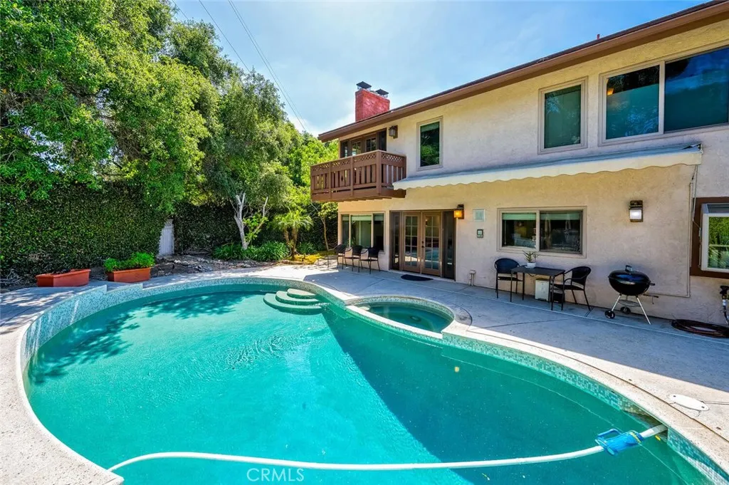 Welcome home to resort style living! This home is beautiful inside and out. Starting with such an incredible location. At the end of the cul de sac and back to Arroyo Park. You have a long private driveway with its own gate. As if the four car garage didnt provide enough parking, the area in front can easily park six more cars. The backyard has a beautiful pool and spa. Complete with gazebo, perfect for getting out of the sun wwhen relaxing by the pool. The mature landscaping provides tons of privacy, making you forget you are in the heart of Orange County. As you enter the home there is a large open Living room or Game room. It has vaulted ceilings,very light and open, with three french doors to a private courtyard area. There is also a downstairs bedroom with french doors to yet another private courtyard area that leads to the pool. The main floor full bathroom has a separate door to the pool area. Upstairs you will find two more bedrooms and a huge bonus room. The master bedroom has separate seating area, fireplace, and a private patio overlooking the resort like back yard and pool. The master bathroom has a soaking tub and sepaarate shower with multiple shower heads and dual vanities. The secondary bedroom are of good size as well. The bonus room at the end of the hall really completes this amazing home. With vaulted ceilings, lots of windows, complete with wet bar. This home truly has it all. Come see for yourself, you won't be dissapointed!