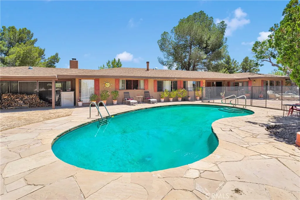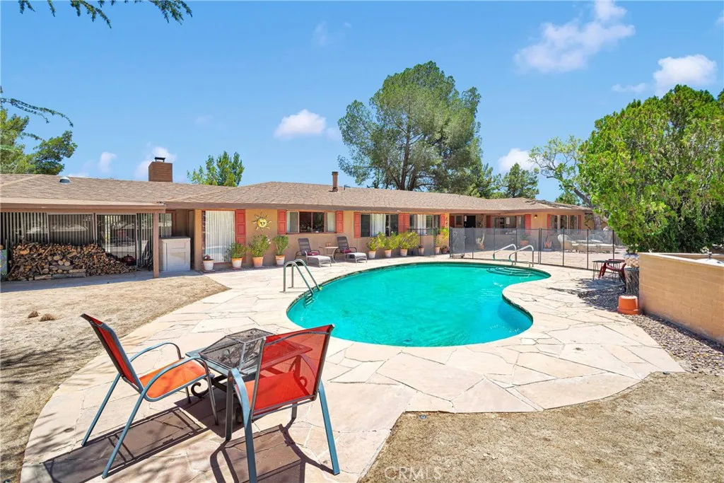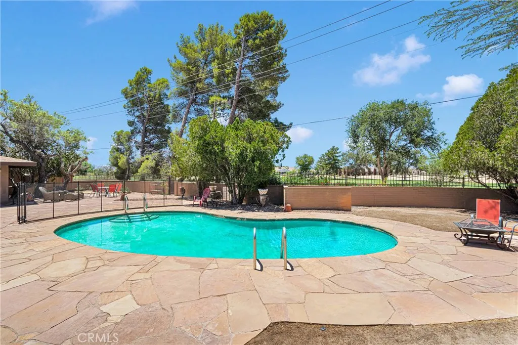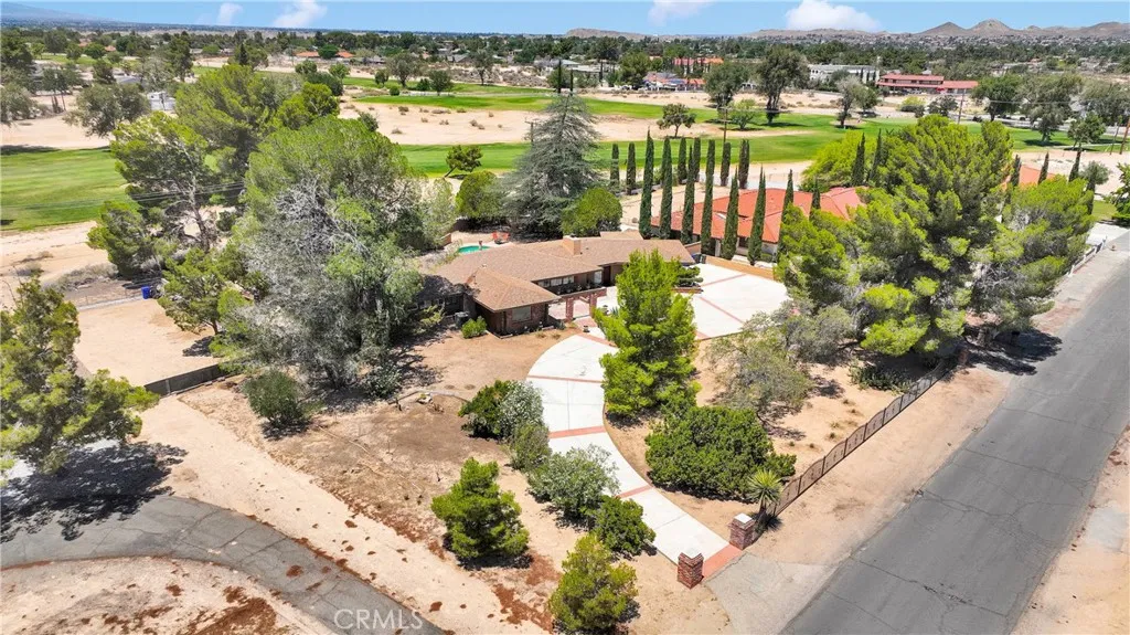***Gorgeous Ranch-Style Pool Home on the Apple Valley Golf Course!*** Spanning over 3,000 sq. ft., this custom 3-bedroom, 3-bath en suite residence offers classic elegance and modern updates in an entertainers dream layout. Set on a beautifully landscaped lot with mature trees, brick and flagstone hardscape, and a circular driveway with extended parking and a two car garage, this home makes a stunning first impression. Inside, the formal entry features open beam ceilings and paver tile flooring, leading through a charming barrel-ceiling hallway into the heart of the home. Enjoy generous storage, plantation shutters, built-in shelving, and a large home office with its own separate front entrance and direct pool access. The expansive living room includes a classic large masonry fireplace and large view windows facing Bass Hill. The kitchen and all bathrooms have been tastefully updated, and the oversized primary suite offers panoramic views of the backyard retreat plus a wardrobe closet. Outdoors, enjoy a kidney-shaped pool, block and wrought iron fencing, two storage sheds, and a spacious covered patio perfect for gatherings. This is a rare opportunity to own a timeless gem on the golf course, blending character, space, and an entertainers lifestyle. Property has been meticulously maintained and has many modernized upgrades. They dont build them like this anymore come experience the charm for yourself!
