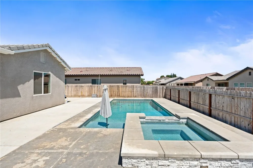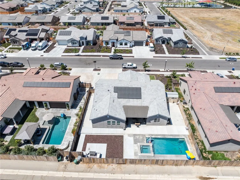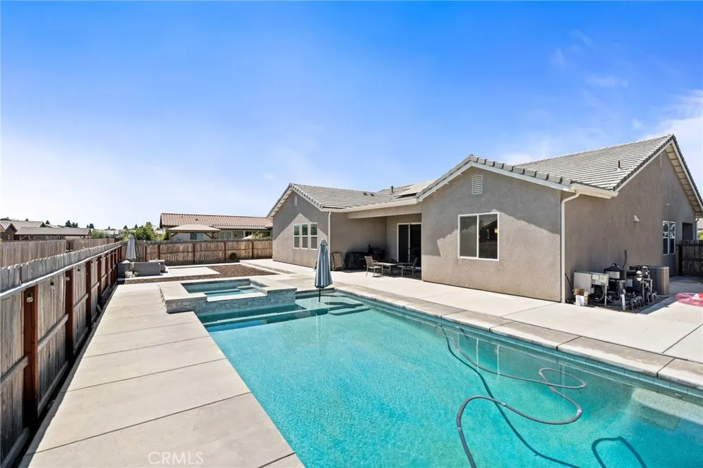 Welcome to 2070 Solig Avenue where luxury meets lifestyle in the charming town of Kingsburg. This elegant 4-bedroom, 3-bath home spans 2,466 square feet and showcases an open-concept layout designed for both grand entertaining and comfortable everyday living. Built in 2022, the home features a flexible office/media room, a spacious 3-car garage, and energy-saving solar. Outside you have a private backyard oasis, complete with a sparkling pool and covered patio perfect for summer gatherings or tranquil mornings. The front and back porches extend the home's inviting ambiance, offering stylish outdoor spaces to unwind. Nestled in a quiet neighborhood, this home blends modern design, thoughtful upgrades, and resort-style living. Don't miss your chance to own this exceptional property.
