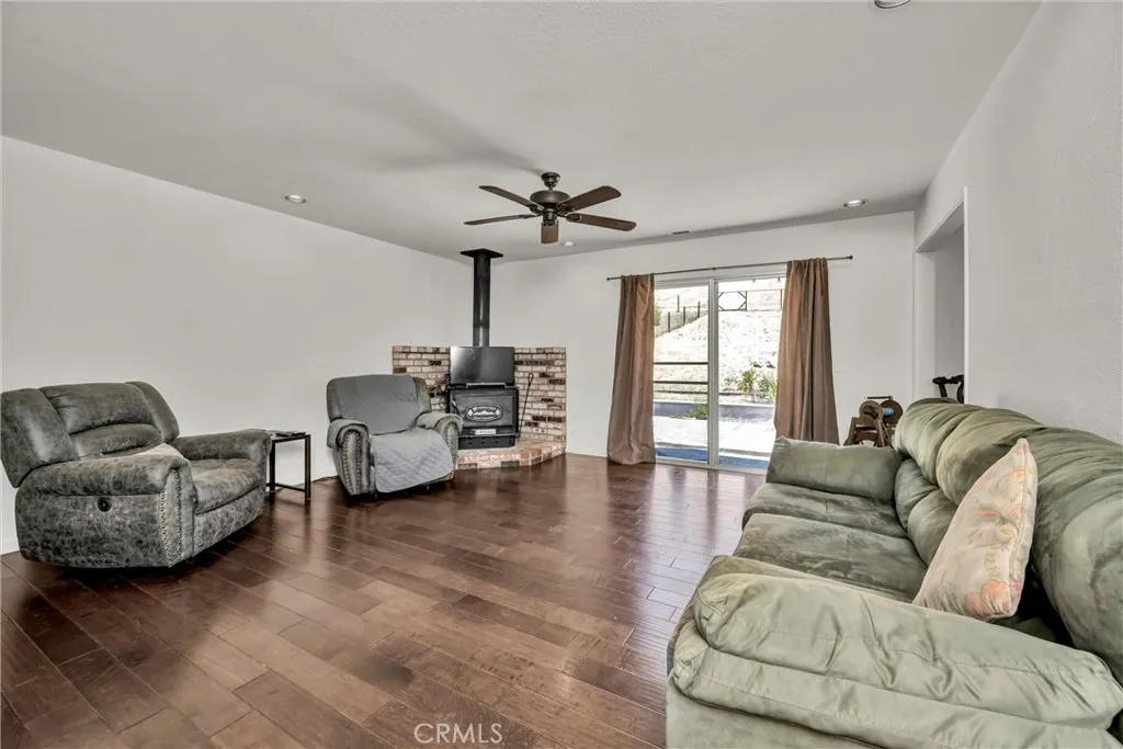 Charming 3-Bedroom Home on Expansive Lot with Upgraded Features & Outdoor Potential Welcome to this inviting 3-bedroom, 2-bath home, situated on a generous over 1/3-acre lot, offering both comfort and room to grow. The fully fenced backyard features a spacious patio area, perfect for entertaining, gardening, or simply relaxing under the stars. Step inside to find engineered wood flooring, recessed lighting, and a cozy wood-burning stove that adds warmth and charm to the living space. A sliding glass door opens to the back patio, making indoor-outdoor living easy and enjoyable. The upgraded kitchen offers newer cabinetry, stainless steel appliances, a breakfast bar, and a sunny dining areaideal for everyday meals or casual gatherings. Both bathrooms have been updated with modern vanities and tile flooring, including a comfortable primary suite with its own private bath. The property has beautiful shade trees in the front, providing privacy and a welcoming first impression. With its modern touches, functional layout, and ample outdoor space, this home offers the perfect balance of style and serenity.
