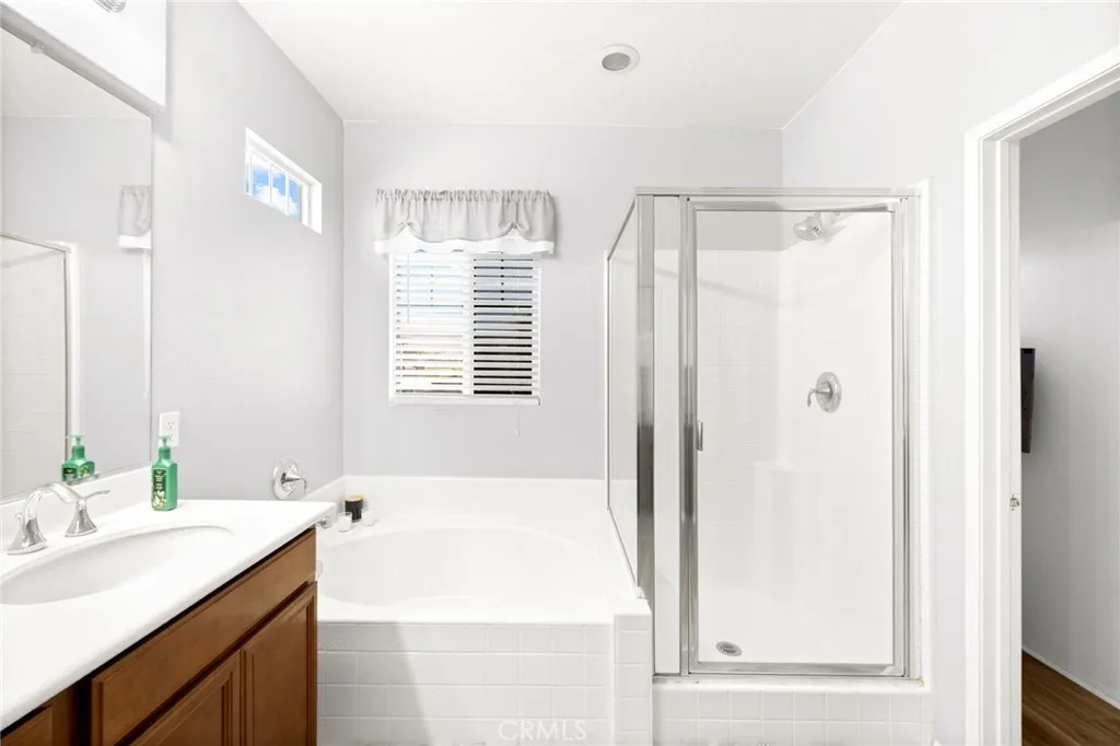 Stylish, spacious, and solar-powered....this upgraded McSweeny Farms home truly has it all! With 5 bedrooms, 3 bathrooms this beautifully maintained two-story home offers both comfort and functionality. The home also offers a 3 car tandem garage...Enjoy formal living and dining rooms, a large family room with a cozy gas fireplace, and an open kitchen with plenty of storage. The home features durable vinyl plank flooring throughout the main living areas...Upstairs features generously sized bedrooms and a spacious primary suite with walk-in closet and ensuite bath. The private backyard includes a gazebo and room to personalize. Energy conscious buyers will love the solar lease, 2 Tesla backup batteries, and 220V electric car charger. Just a couple minute walk to the clubhouse, where you'll find resort-style amenities like a pool, spa, fitness center, parks, and walking trails. Close to schools, shopping, and Diamond Valley Lake. This home is the perfect blend of lifestyle, location, and smart living...dont miss it! Seller IS MOTIVATED!!!