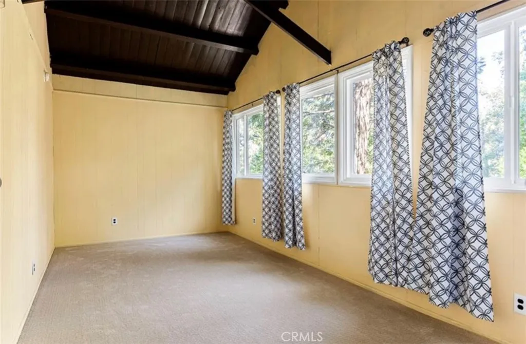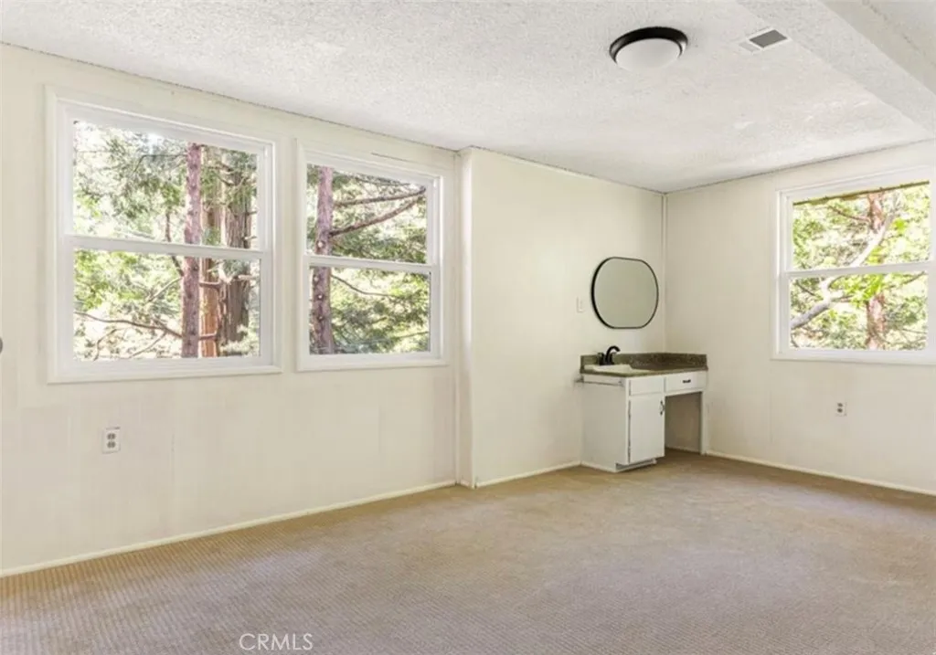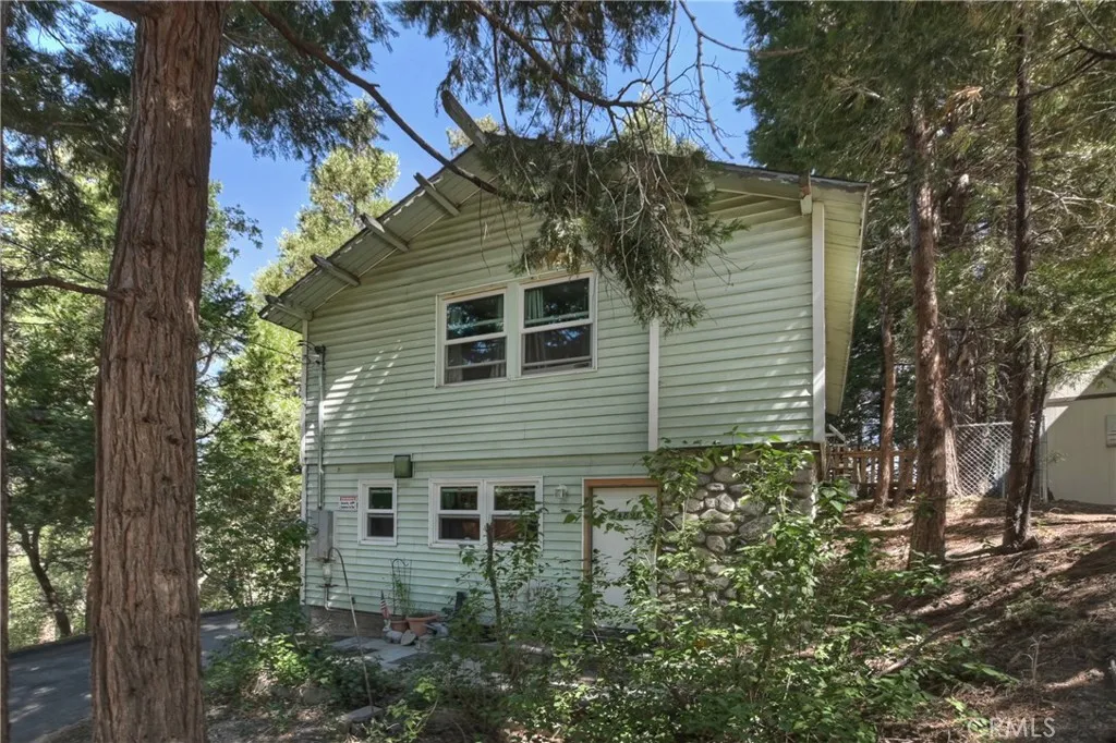 Located in the popular San Moritz neighborhood of Crestline and only minutes from Lake Gregory is this charming 2-bedroom, 1 bath home, with level entry and plenty of parking. The lower-level features stone walls and an open concept floor plan. The living room flows into the kitchen, and you will also find the bathroom on this level. The second level has two bedrooms and a large bonus room that would be a great office space or game room. All in all, this is a very comfortable and cozy home with pleasing curb appeal. The level backyard really stands out as a rare feature in the mountains. A privacy fence has been added, along with a chain-link fence with a gate, providing a secure area for kids or dogs to play. Crestline is a great place to live full time or part-time. You will love the local the trees and forest environment, the community events and also the quaint rural feeling that affords a break from the concrete jungle. Crestline is also within a reasonable commute time to San Bernardino, Redlands, Rancho Cucamonga and Riverside. *Current 1/4 bathroom is a sink only. There is a place noted by the current owner's plumber to add a 1/2 bathroom and laundry hookups.