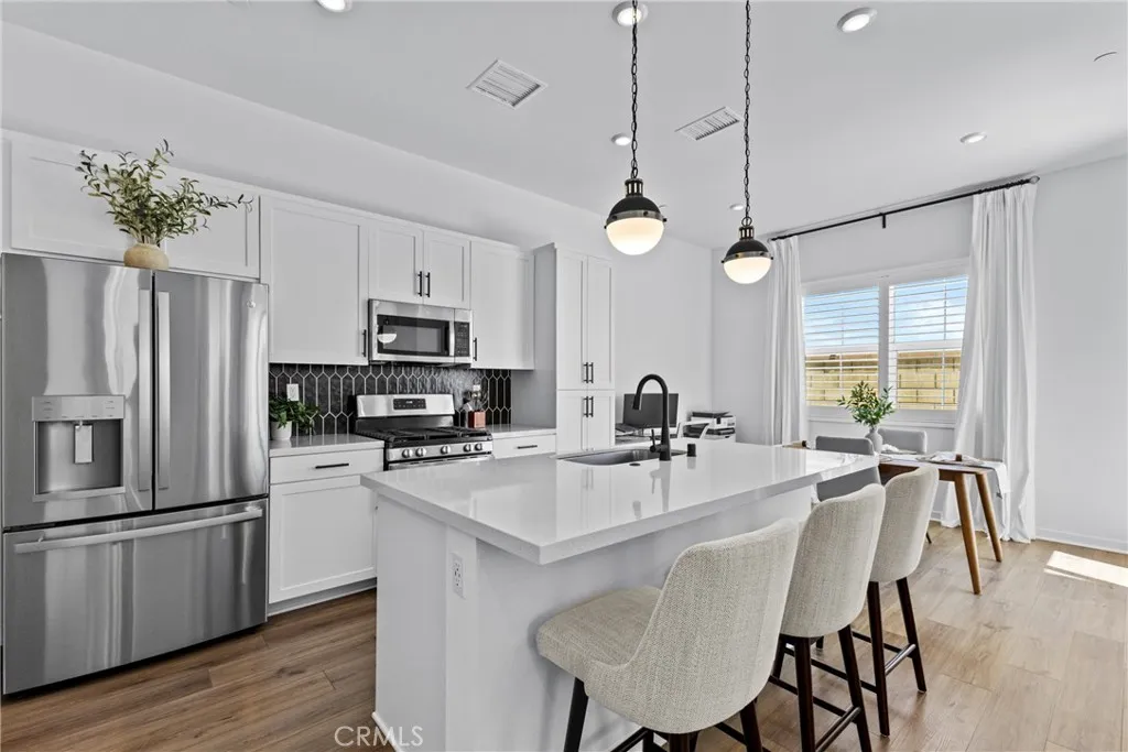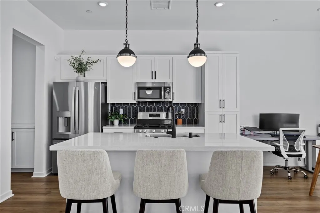 Live the Dream at NUVO Parkside - Modern Luxury Meets Everyday Comfort!!! Step into elevated living in this stunning 3-bedroom, 2 1/2-bathroom home in the sought-after gated community of NUVO Parkside. With 1,596 sq. ft. of beautifully designed space, this open-concept layout effortlessly connects the kitchen, dining, and living areas- ideal for both entertaining and everyday relaxation. Luxury vinyl flooring flows from the main level into the upstairs wet areas, creating a sleek and cohesive feel throughout. The chef-inspired kitchen shines with gleaming white quartz countertops, custom shaker cabinets, a stylish tile backsplash, and a large center island perfect for prepping, serving, and gathering. Additional highlights include a two-car garage for added storage and convenience, and thoughtful eco-friendly touches such as EV charging stations and rideshare parking. NUVO Parkside offers a true resort-style lifestyle with premium amenities: unwind in the pool and spa, stay active in the gym, host events in the community room, or relax in the covered lounge areas. Expansive green spaces, a playground, BBQ area, and walking paths make this a place to enjoy inside and out. With its modern finishes, community features, and prime location, this home is more than a place to live - it's a place to thrive. Don't miss your chance to call NUVO Parkside home!!!