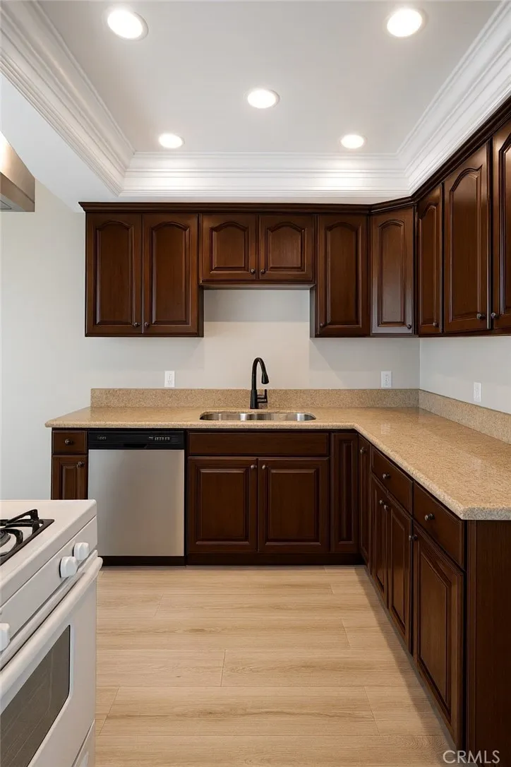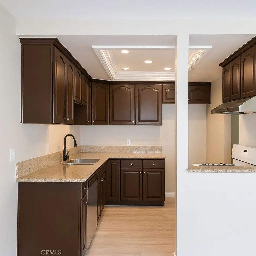Beautifully Remodeled Ground-Level Condo in Gated Community! Welcome to this clean, gorgeous, and move-in ready ground-level entry condo featuring a detached 2-car garage and modern upgrades throughout. Recently remodeled by the owner, this home boasts a brand-new kitchen, updated bathroom, and laminate flooring throughout. Enjoy the convenience of in-unit washer and dryer hookups and a functional, stylish layout. Located in a safe, well-maintained gated community with amenities including a sparkling pool, relaxing spa, covered patio area for BBQs and picnics, and ample guest parking right out front. Perfectly situated near top local attractions and dining, just minutes from Rodeo 39 Public Market, Knotts Berry Farm, and Soak City Water Park this location offers both comfort and convenience!
