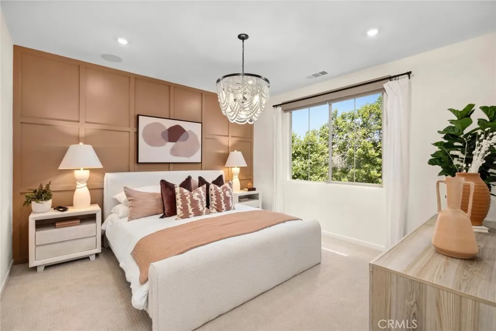 Welcome to this stunning modern tri-level home in the GATED Mirasol community! This brand-new, energy-efficient Plan 2 offers 2 bedrooms, 2.5 bathrooms, and 1,298 square feet of thoughtfully designed living space, complete with an attached 2-car tandem garage. Upon entering, you're welcomed by a bright foyer with a convenient storage closet and direct garage access. As you ascend to the main level, you'll discover an open-concept living area featuring a charming balcony, perfect for entertaining or relaxing in the fresh air. The beautifully appointed kitchen boasts white shaker cabinets, a large island with quartz countertop, and LG stainless steel appliances, including a range, microwave, dishwasher and refrigerator. On the third level, you'll find two spacious bedrooms, each with its own en-suite bathroom. This level also includes a stacked laundry room with washer and dryer included for added convenience. Centrally located near schools, parks, and more, with easy access to the I-10 and I-605 freeways, offering a smooth commute to both DTLA and Orange County.