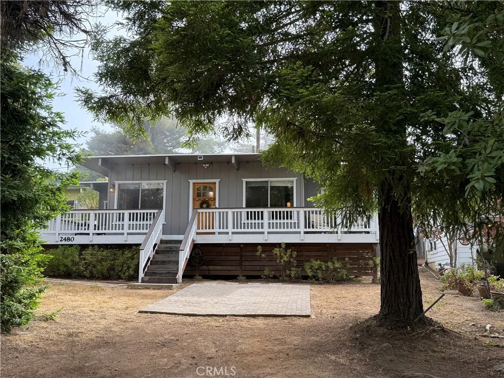This mid-century cottage is tucked behind mature redwood trees and is located near an entrance to the Fiscalini Open Space Ranch Preserve and walking distance to the ocean. There is a large front yard which also provides off-street parking. Up a few stairs toward the front door, a wrap-around deck offers places to enjoy the sunshine, the birds or views of the local deer and turkeys! Once inside the home, you will find a large single level, open floor plan with painted wood ceilings, large picture windows and a free-standing wood fireplace. The central kitchen has solid surface quartz counters and a tile backsplash. There are two bedrooms, each with access to the wrap-around deck. Each bedroom has an en-suite bathroom. A laundry/mud room adds extra cabinetry and perhaps a place for crafts studio or office. This is a very charming Cambria cottage in a fantastic location!