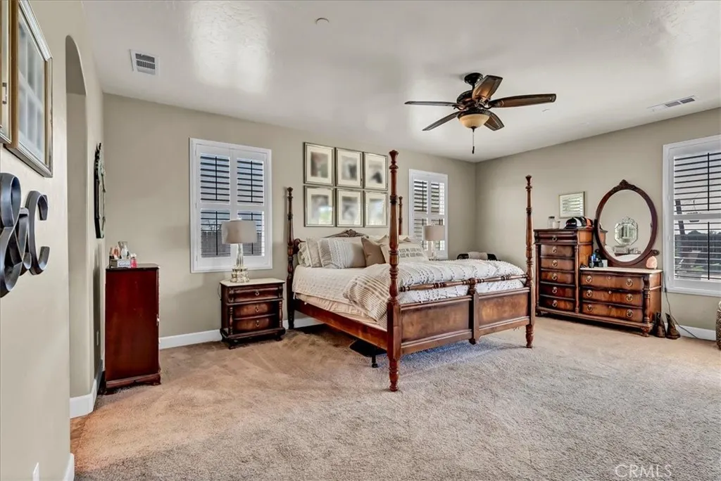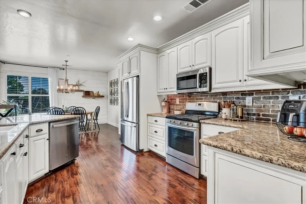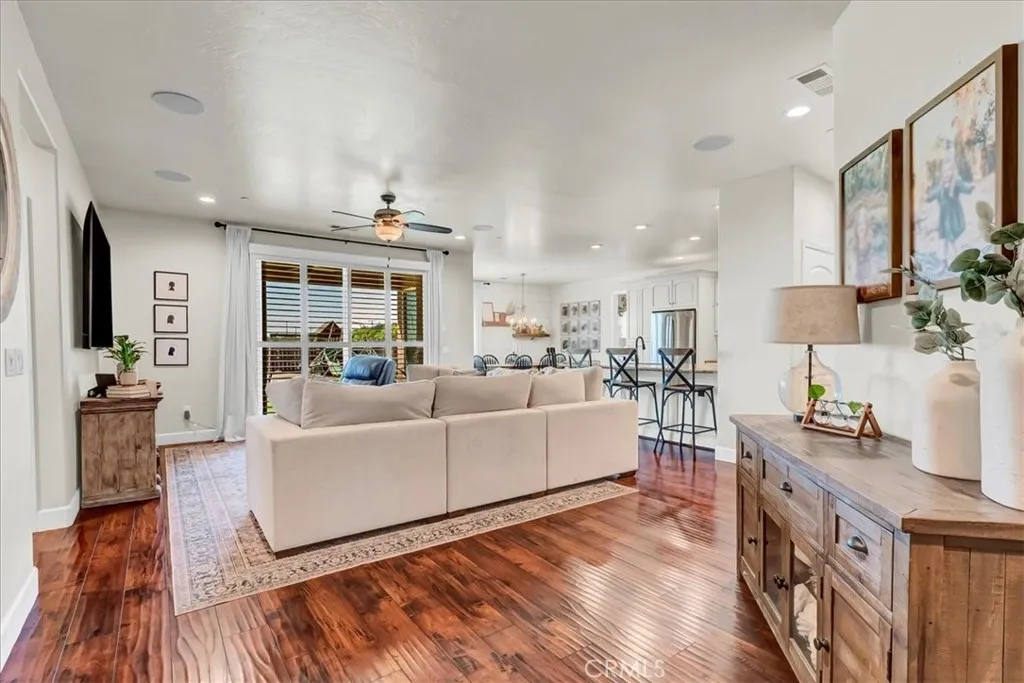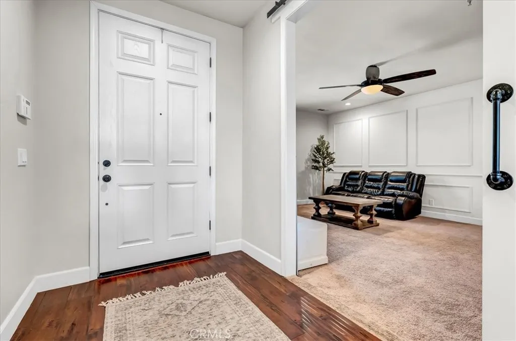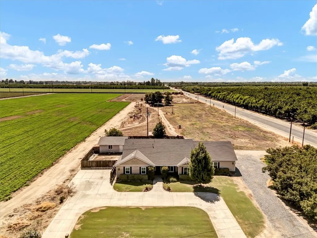 Welcome home to this beautifully updated 4-bedroom, 2-bath country retreat that blends modern functionality with rural charm. Situated in SE Visalia & surrounded by farmland views, this home welcomes you with lush curb appeal, a wide driveway, and a welcoming front porch. Inside, the open-concept floor plan boasts rich hardwood flooring, plantation shutters, and thoughtful upgrades throughout. The entertainers kitchen features granite countertops, stainless steel appliances, and ample bar seating, flowing seamlessly into the dining and living areas - ideal for both daily living and entertaining. The large in-home laundry room adds convenience, while a bonus playroom offers flexible space for a home office, hobby room, or study zone. The private primary suite includes a spa-like bathroom with dual sinks, a soaking tub, walk-in shower, and large closet. Three additional bedrooms provide comfortable living for family or guests. Step outside to a fenced backyard designed for fun and relaxation - featuring a covered patio, in-ground trampoline, sandbox play area, and plenty of green space. And dont miss the fully finished "man cave" with its own gym and movie theater setup - your ultimate retreat right at home. Leased solar adds energy efficiency, rounding out this turnkey property. Experience peaceful country living just minutes from town, with space to spread out and enjoy. Schedule your private showing today!