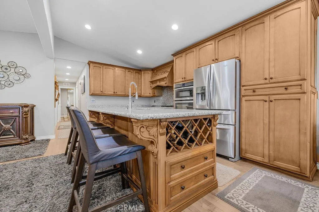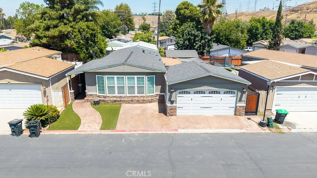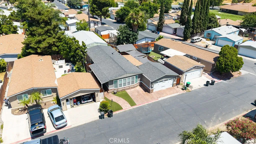 Fully Renovated Manufactured Home on Permanent Land No Land Lease! This beautifully upgraded manufactured home sits on its own land no space rent, no land lease! Featuring brand-new flooring, a new roof, fresh paint, custom cabinetry, updated drywall, and charming brick stone skirting, this home offers modern living with timeless touches. Enjoy outdoor entertaining with a stylish built-in barbecue island under a covered patio, perfect for gatherings year-round. A spacious 2-car garage provides ample storage and parking. Conveniently located near shopping centers, popular restaurants, and just minutes from the 10, 215, and 15 freeways, this home offers easy access to everything you need. Move-in ready with pride of ownership throughout dont miss this rare opportunity! Se Habla Espanol!
