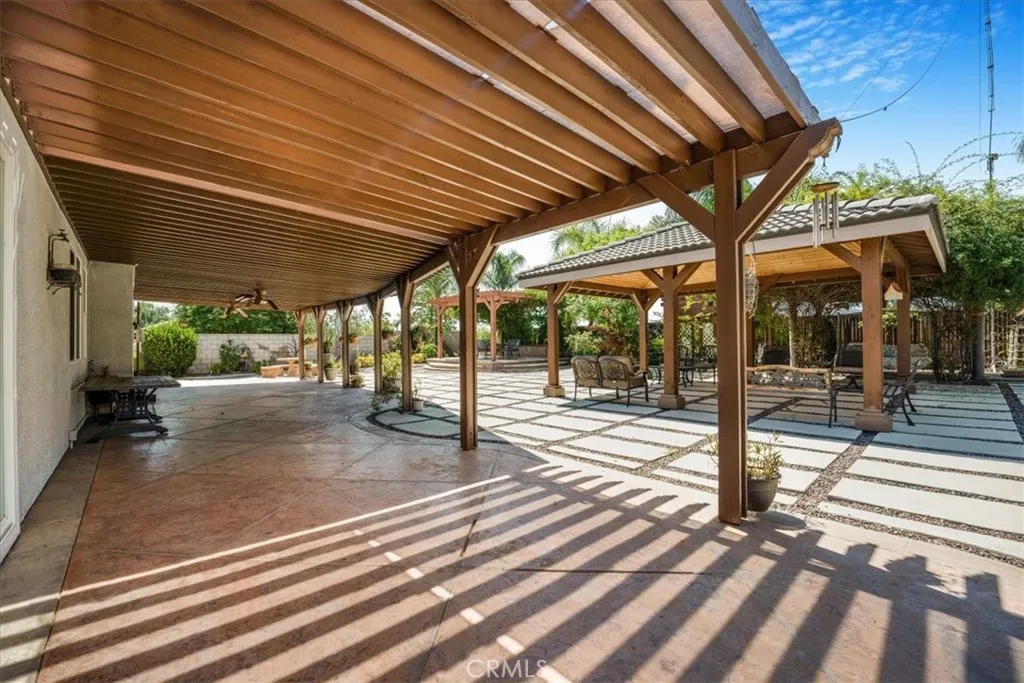 Welcome to Boulder Springs A Rare Single-Story Estate in the Gavilan Foothills of Perris First time on the market since its construction in 2008, this beautifully maintained single-story home offers a rare combination of land, luxury, and lifestyle. Nestled on a sprawling 20,483 sq ft lot, this estate boasts five covered patios, lush landscaping, fruit trees, vegetable garden planters, custom stepping stone pathways, and ample space for entertaining or relaxing in a serene setting. Whether you're hosting large family gatherings or enjoying quiet moments, this home is truly an entertainers delight. Step inside to experience an impressive 3,200 sq ft open-concept layout, thoughtfully designed for comfort and flow. The grand entrance features 16-foot ceilings and a custom wrought iron and glass double door, leading to formal living and dining areas with soaring ceilings. The spacious kitchen is equipped with granite countertops, abundant cabinetry, and a large center island that seamlessly connects to the family room and breakfast nook complete with a cozy fireplace and media niche for ultimate comfort and entertainment. Throughout the home, inviting porcelain tile flooring enhances the clean, modern feel. With 4 bedrooms, 3 full bathrooms, and a dedicated office, theres plenty of space for your lifestyle and creativity. The private primary suite is a luxurious retreat featuring a spa-like en suite with soaking tub, separate shower, dual vanities, and a walk-in closet. A convenient indoor laundry room with direct garage access adds everyday functionality. Outside, enjoy a 3-