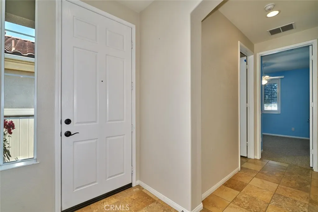 Affordable "Princess" home in Solera, a gated 55+ community. Amazing wide-open VIEWS on the golf course and mountains beyond. 2 bedrooms, 2 baths and an office. Remodeled showers in both bathrooms. Ceramic tile throughout except bedrooms. Extended front patio area. Gas fireplace in the living room. Screened door to garage. Plantation shutters. Overhead storage and extra cabinet storage in the garage. Basic Spectrum TV cable and Spectrum Internet are Free through the HOA. The spa is not included with the sale. Solera is a guard-gated community with a great gym, indoor walking track, billiards, meeting rooms, tennis courts and a heated pool and spa. Plenty of groups and classes to join at the clubhouse. Solera is located close to Palm Springs, Redlands, golf courses, Morongo Casino and the Cabazon Outlet Malls. Welcome to the good life!