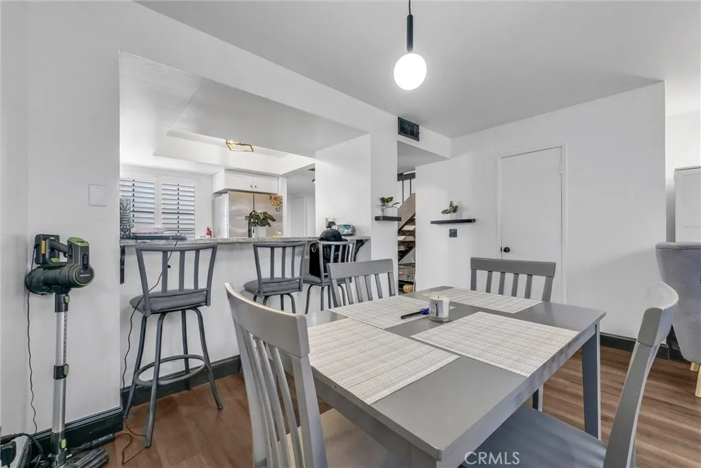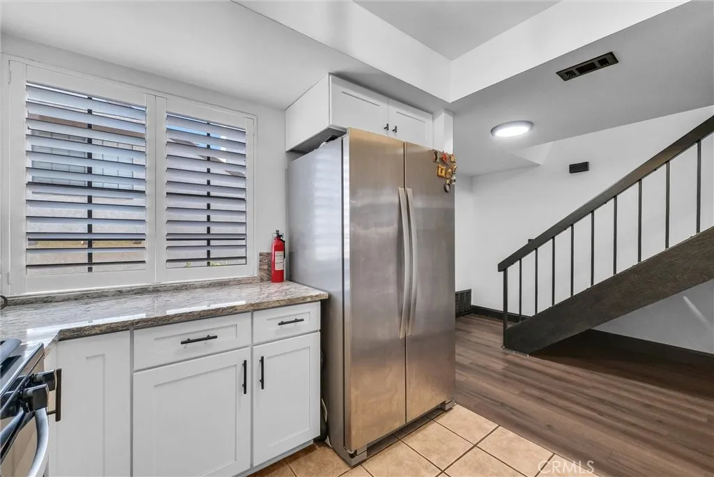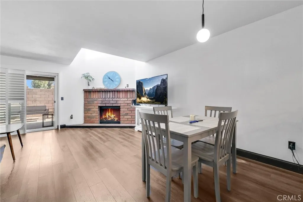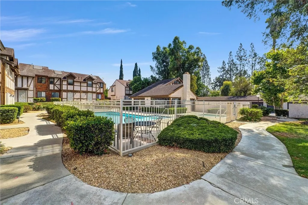 Welcome to this beautifully updated and thoughtfully designed townhome in the charming Stratford Village community of Ontario, ideally located just steps from the pool and clubhouse. Brimming with warmth and natural light, this inviting home showcases soaring vaulted ceilings, fresh neutral-tone paint, and wood-style flooring that flows through the open-concept living and dining area, complete with a cozy fireplace perfect for cool evenings. The bright, modern kitchen features crisp white cabinetry, gleaming granite countertops, stainless steel appliances including a refrigerator, dishwasher, and stove, plus stylish hardware and lighting accents. Upstairs, you'll find a generously sized bedroom with a walk-in closet and an updated full bath with quartz countertops and contemporary finishes. A washer and dryer are conveniently included, making everyday living easy. Step outside to your own private patio oasis, ideal for morning coffee, peaceful evenings, or weekend barbecues with friends. Adding even more value, this home offers a one-car garage, an assigned covered parking space, and access to community amenitiesall wrapped in a friendly, well-maintained neighborhood setting. Close to shopping, schools and freeway access.