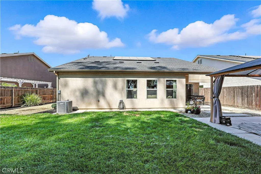 THIS HOME IS TRULY MOVE IN READY! Beautiful home located in an established quiet neighborhood in North Merced, close to college, hospital, shopping and more. Home was updated in early 2024 with new carpeting and upgraded Pad in all bedrooms. Kitchen features Granite counter tops, an oversized kitchen island, beautifully stained cabinets, new Stainless-Steel Microwave and dishwasher. Bathrooms have been updated with new modern fixtures. Ceiling fans in all bedrooms and living room. Home also features a tankless water heater. Driveway has been widened for extra parking. All new landscaping with new Wi-Fi sprinkler system which includes a drip system for the flower beds. New covered Gazebo for sitting and relaxing under. Storage shed located on side yard for storing those gardening tolls and more. MID and solar panels to help save on those electrical bills.