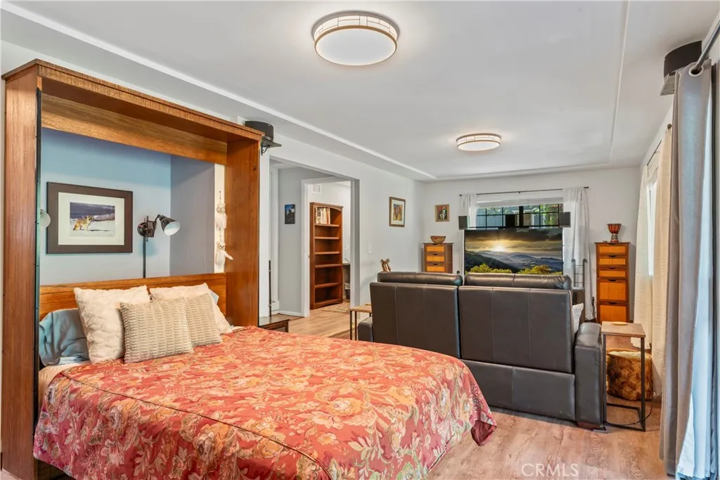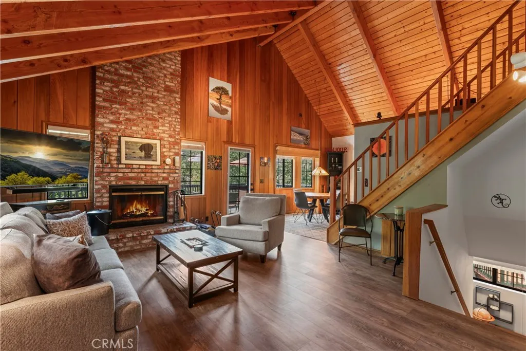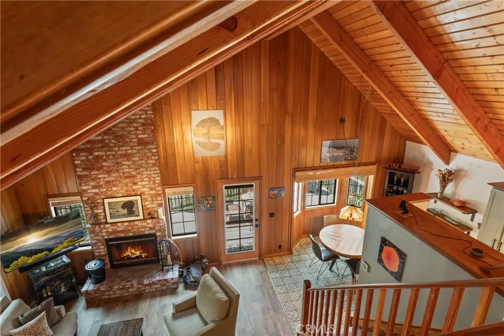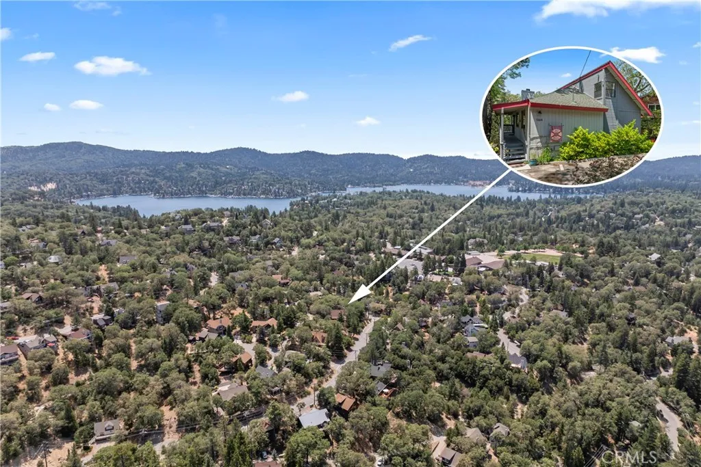 Turnkey Lake Arrowhead Gem with Lake Rights, Solar & Designer Finishes. Welcome to a home that truly checks every boxfrom lake rights and paid-off solar panels to a flat, street-level driveway on a county-maintained cul-de-sac with easy year-round access. This thoughtfully designed retreat blends modern comfort with mountain charm, offering stunning finishes, no deferred maintenance, and a sun-soaked, tranquil setting. The inviting main level features an open-concept living space with vaulted, beamed ceilings, a beautifully remodeled kitchen with quartz counters, designer cabinetry, custom tile, and luxury vinyl floors, plus two bedrooms and 1.5 bathrooms. The primary bathroom is a showpiece with Calacatta herringbone marble, blending elegance with everyday luxury. Upstairs, a versatile loft functions as a fourth bedroom, office, or cozy hideaway. The lower level adds even more flexibility with a bedroom, full bath, and built-in Murphy bedideal for guests or extended family. Enjoy mountain living at its best with two expansive decks overlooking a seasonal creek and wooded landscape. Nearly all furnishings are includedrefrigerator, washer/dryer, living and dining sets, and bedroom furnituremaking this a true turnkey opportunity. Additional highlights include a tankless water heater, dual-pane windows, and a four-zone covered electric A/C system. Located in the sunny north side of Lake Arrowhead, youll appreciate less snow to shovel while still being minutes from the lake and village. This is the kind of home that leaves a lasting impressionrefined, relaxed, and ready to enjo