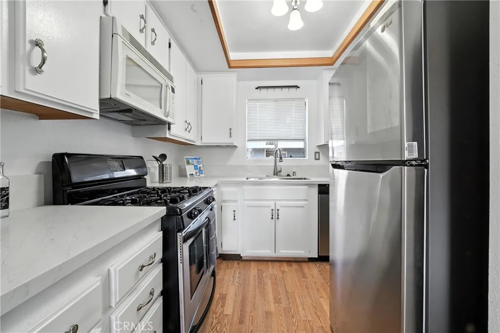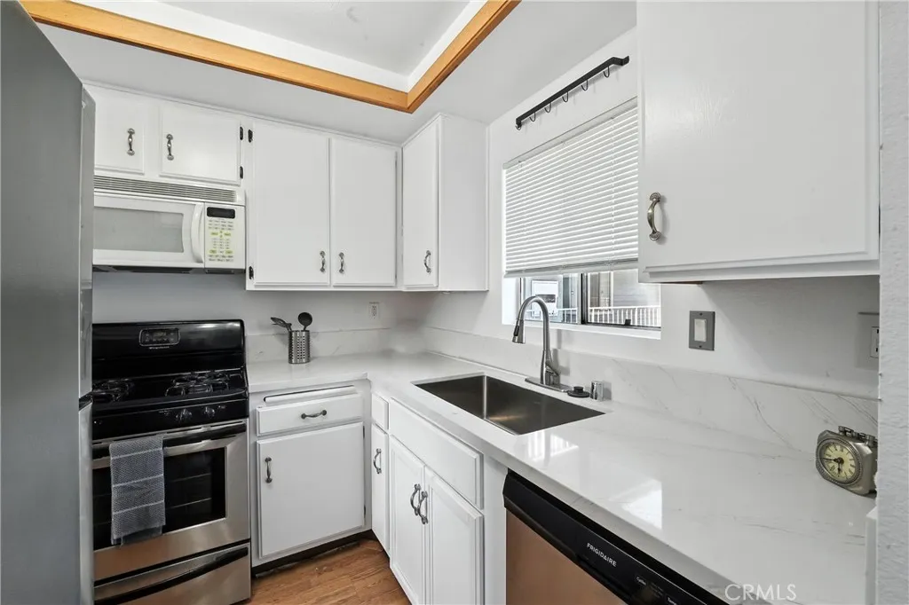 Welcome to this stunning, AMAZINGLY PRICED 2 Bedroom, 1 Bath condominium in the heart of Alamitos Beach, just a few blocks from the Pacific Ocean. INCLUDES INDOOR INCLUDED LAUNDRY AND ONE PARKING SPACE! Upon entering, this unit you'll immediately notice updated kitchen, adorned with new quartz countertops, stainless steel appliances and white cabinets. The open concept layout seamlessly connects the kitchen to the dinning room/living room area that includes a gas fireplace and ceiling fan. From the living space, step outside onto the balcony and be captivated by the breathtaking skyline views of Long Beach, perfect for savoring your morning coffee or unwinding after a long day. The refreshed bathroom showcases a modern design with new fixtures, new mirror and light and a shower/tub combination. The brand new carpet and laminate flooring throughout enhances the modern aesthetic of the space, making it both stylish and easy to maintain. The unit also has fresh paint and central air and heat with a smart thermostat. Again, there is laundry inside the unit that is INCLUDED! Conveniently located close to downtown, you'll have easy access to an abundance of amenities including shoreline village, downtown, Long Beach Aquarium, convention center. Take advantage of the local attractions, vibrant nightlife, and endless recreational activities just a short distance away. The gated community itself provides a range of amenities for its residents. Cool off on those hot summer days in the refreshing pool or gather with friends and family. Entertain guests in the clubhouse that features a