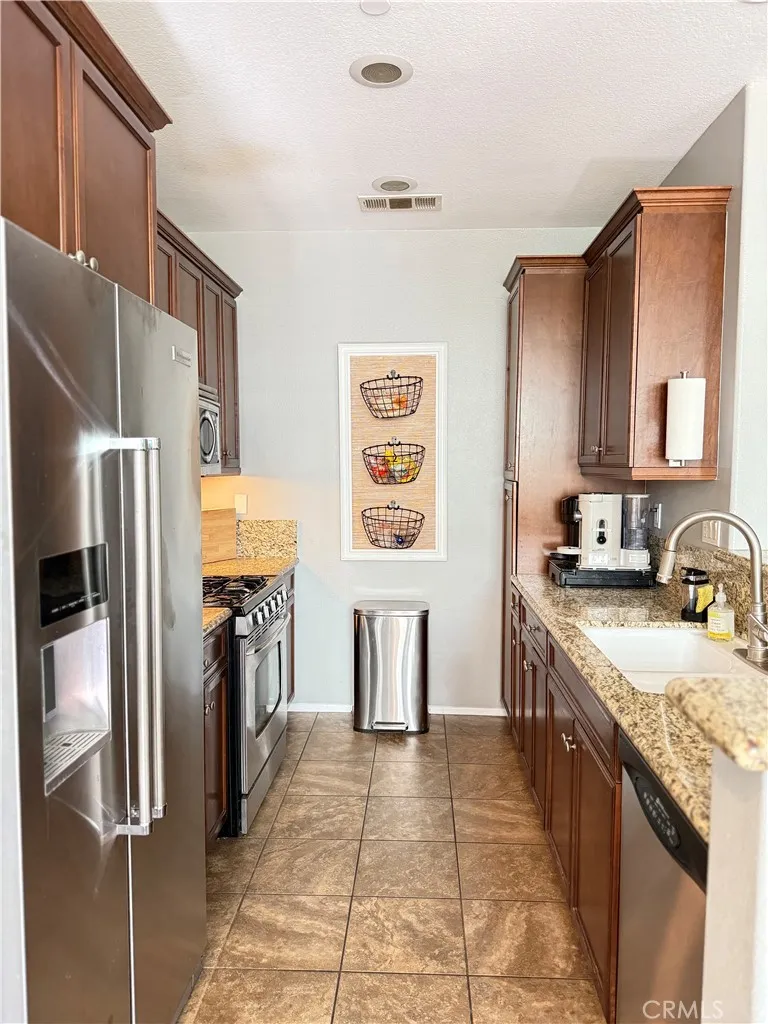 Welcome to a private end-unit condo located in the gated Serafina community in Eastvale. This two-bedroom, two and a half bathroom home offers a smart, split-level layout ideal for comfort and privacy. You will find a bright and spacious living room that flows seamlessly into the dining area and kitchen, creating an open-concept space perfect for entertaining or everyday living. The kitchen features ample cabinetry, generous counter space and a layout designed for convenience. This unique floor plan features one bedroom downstairs and one bedroom upstairs, each with its own private en-suite bathroomperfect for guests, children or a home office setup. A convenient half bath is located on the main floor for guests. As an end-unit, this home benefits from added privacy and extra natural light. Enjoy resort-style amenities including a sparkling pool, spa and playgroundall within steps of the front door. Conveniently located near top-rated schools, shopping centers, dining, and major freeways, this home offers the best of Eastvale living in a secure, well-maintained neighborhood. Dont miss your chance to own this turnkey gem in one of the areas most desirable communities.