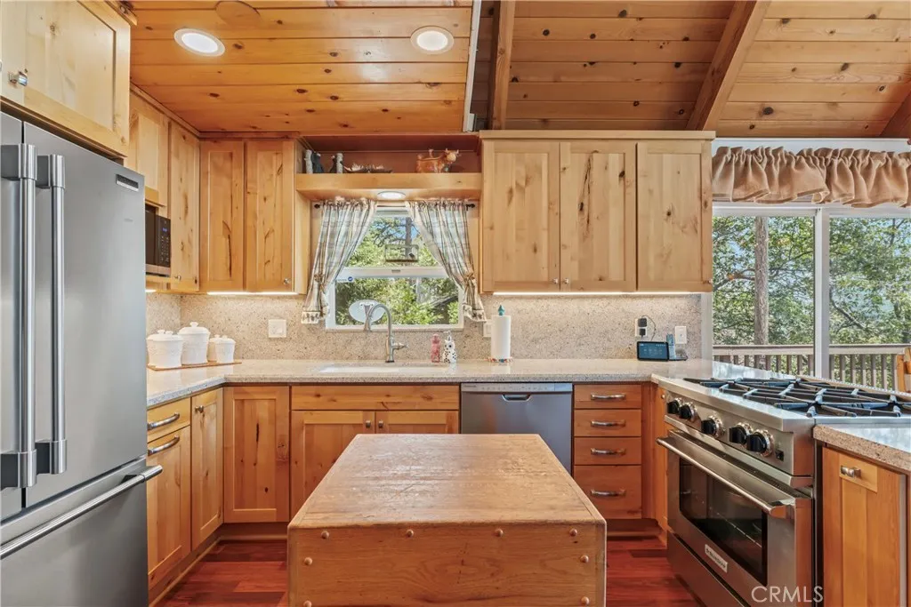 Secluded Mountain Retreat with a Lake View--- Discover the perfect blend of modern comfort and tranquil mountain living at this beautifully upkept home just one mile from downtown Crestline. Nestled in a secluded, forest-surrounded setting, this 3-bedroom, 2-bath home offers a lake view and a true escape into nature with the convenience of a great commuter location. Step inside and enjoy thoughtful upgrades throughout, including Alder wood cabinetry, Cortez countertops, and a Blue Star stove a dream for any home chef. The open-concept living area features auto blinds, a cozy wood-burning fireplace, and access to the spacious Fiberon composite deck perfect for entertaining or simply relaxing among the trees. Stay comfortable year-round with central A/C, two mini split units for efficient heating and cooling, and a Generac generator that ensures peace of mind during all seasons. Wildlife is abundant here, offering a unique opportunity to experience mountain life in harmony with nature all while being just minutes from schools, shops, and Lake Gregory. Whether youre raising a family, looking for a weekend retreat, or seeking a full-time mountain home, this property offers the best of Crestline living: privacy, beauty, comfort, and convenience.