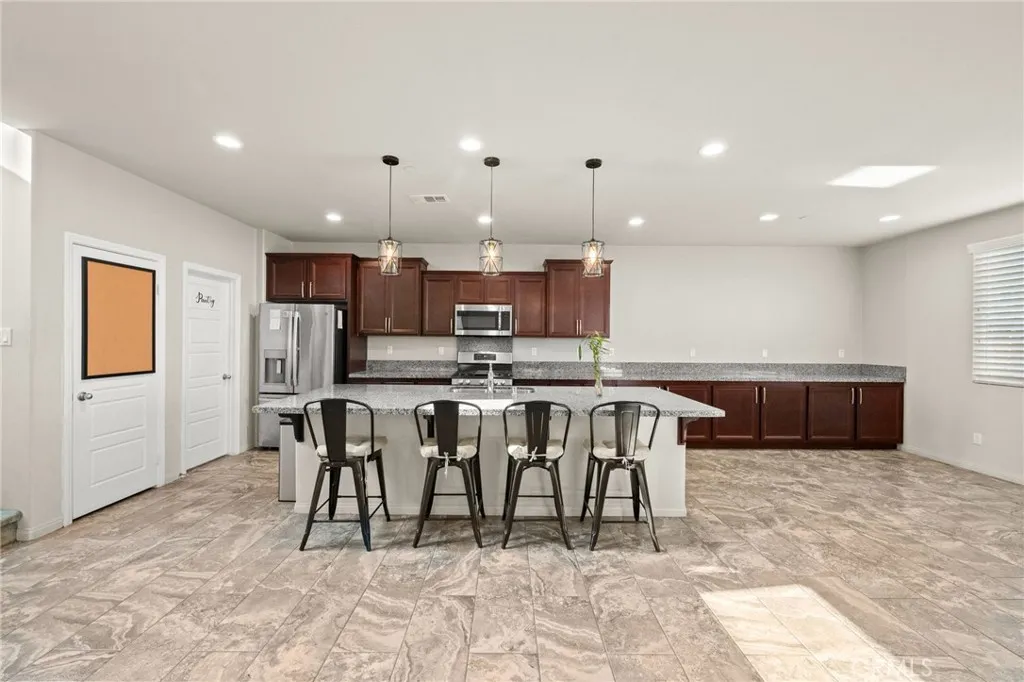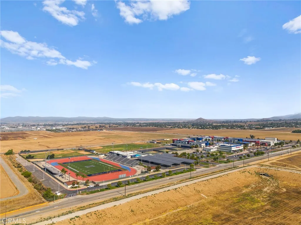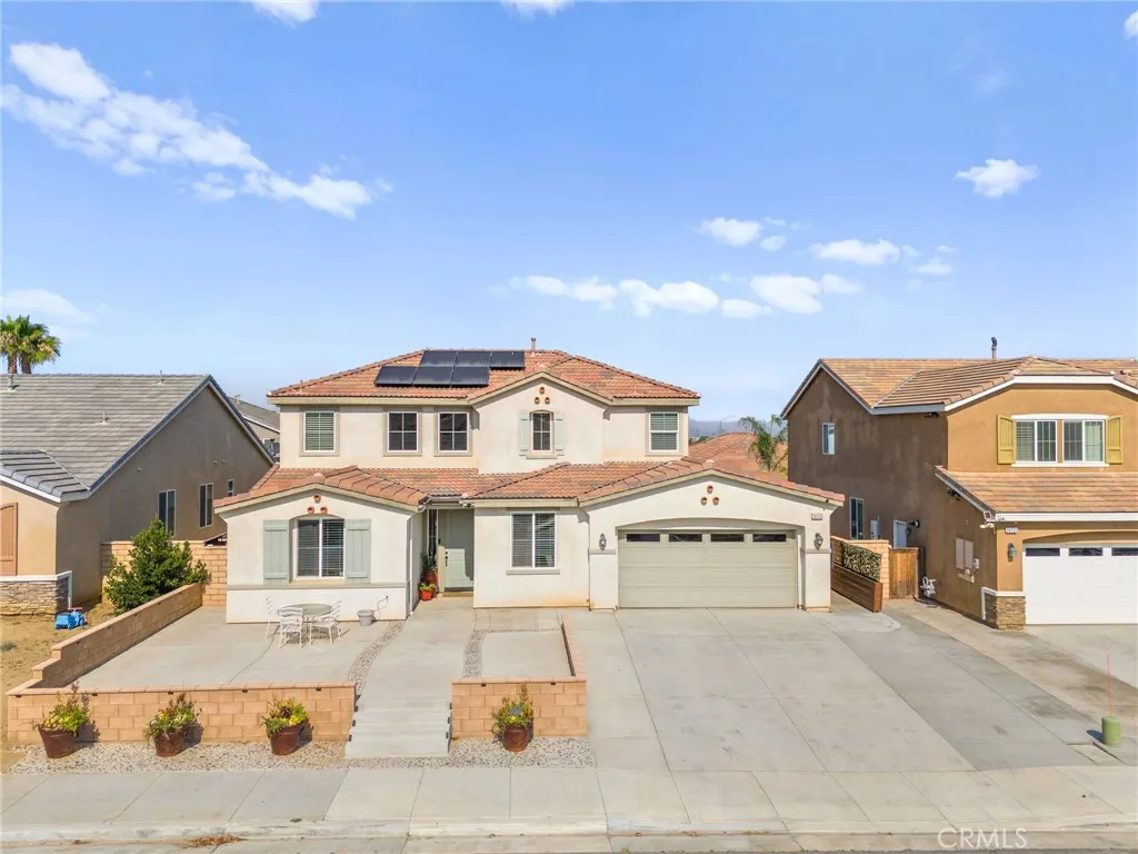 Welcome to 26535 Emperor Road, a warm and inviting two-story home in the heart of Menifee, thoughtfully designed for comfortable family living. This well-maintained residence offers four bedrooms, three full bathrooms, and a versatile office or den, with a convenient downstairs bedroom and full bathroom that works perfectly for guests, extended family, or a private home office. Large windows throughout the home fill the space with natural light, creating a bright and cheerful atmosphere ideal for everyday living. The open-concept kitchen connects seamlessly to the main living and dining areas, making it easy to stay connected during family meals and gatherings. The kitchen features abundant cabinetry, expansive counter space, and a full suite of appliances included in the sale, providing both function and convenience. Central air conditioning and heating, along with a Quiet Cool whole-house fan and electric water heater, ensure year-round comfort and efficiency. Upstairs, the primary suite offers a relaxing retreat with a generously sized walk-in closet and private ensuite bathroom, while the additional bedrooms are well-sized to accommodate growing households. Outside, the home continues to impress with a spacious, low-maintenance front and backyard that are fully cemented and ready for container gardening, outdoor play, or entertaining. An oversized patio provides the perfect setting for family barbecues or relaxing evenings, while the oversized driveway offers plenty of parking for multiple vehicles. The garage is equipped with ceiling-mounted storage racks for organizat