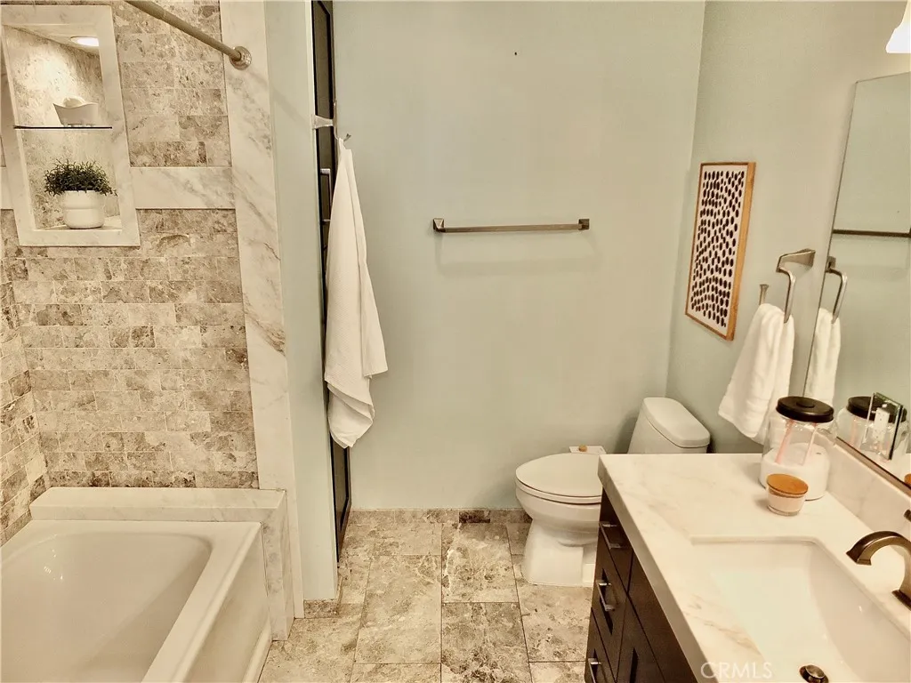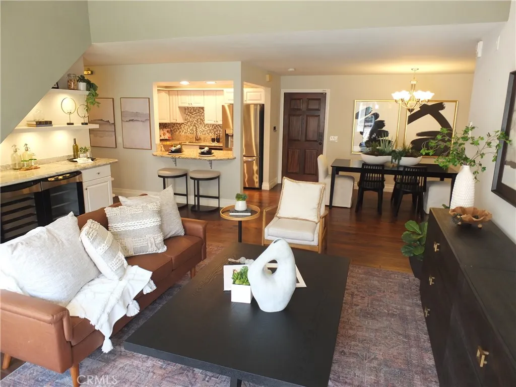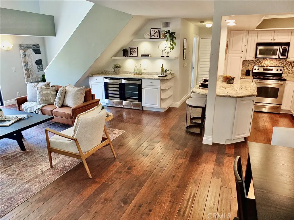 Modern Coastal Living with Soaring Ceilings & Versatile Loft! Welcome to this exquisite and rare top-floor corner condo in the highly desirable Villa Pacifica community of Long Beach. Offering approximately 1,400 sq ft of beautifully designed living space plus an additional 140 sq ft of finished flex space (ideal for a home office, guest room, or creative retreat) - this spacious 2-bedroom, 2-bathroom residence combines modern luxury with smart functionality. Step inside to discover vaulted ceilings, abundant natural light, and a flowing open-concept layout. The updated kitchen is a chefs dream, featuring granite countertops, a custom tile backsplash, stainless steel appliances, bar seating, and a large island breakfast barperfect for both everyday meals and entertaining. The kitchen opens to a cozy living room complete with a sliding glass door that leads to a balconythe perfect spot for morning coffee or evening sunsets. The primary suite features generous closet space and a private en-suite bathroom, while the second bedroom and full bath provide comfort for guests or family. Upstairs, the spacious loft and finished attic space offer flexible living options to suit your lifestyle. A bonus is the mountain views from your private unfinished roof top deck accessed from the loft through a sliding glass door and a pet door. Luxury Features: In-unit laundry (washer & dryer included) Recessed lighting Central air & heat Dry bar with dual wine/beverage fridges Vaulted ceilings & large windows Private balcony with treetop views Cedar line closets Building & HOA Amenities: