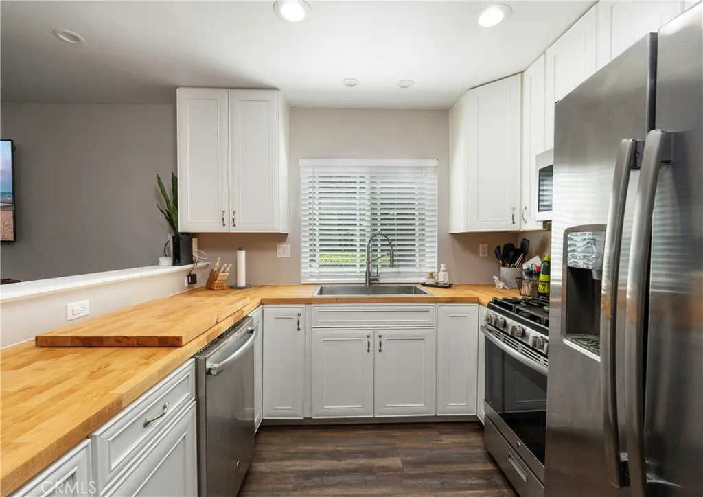 Beautifully Updated Remodeled Town Home! End Unit Tucked in the quiet gated community in Norwalk. With one Shared wall and a charming front patio. Enter through the spacious Livingroom and cozy up to the nice fireplace. Open Floor plan looking into the fully remodeled Kitchen with new cabinets and newly installed Butcher Block Counter tops. A must See.... Open Pantry and storage. Downstairs remodeled Bathroom is large spacious. Separate Dining is ready for your family and open for entertaining. As you go upstairs you will be pleasantly, please with high vaulted ceilings as you enter 1st Bedroom that Jack-n-Jills into the Large Primary Bedroom suite. All Upstairs has new carpet and remodeled bathroom. Come Check this one out before it goes.... This home has so much to list. New Central A/C & heat, 2 Car Garage, all window replaced ... low HOA. This home is just waiting for you!