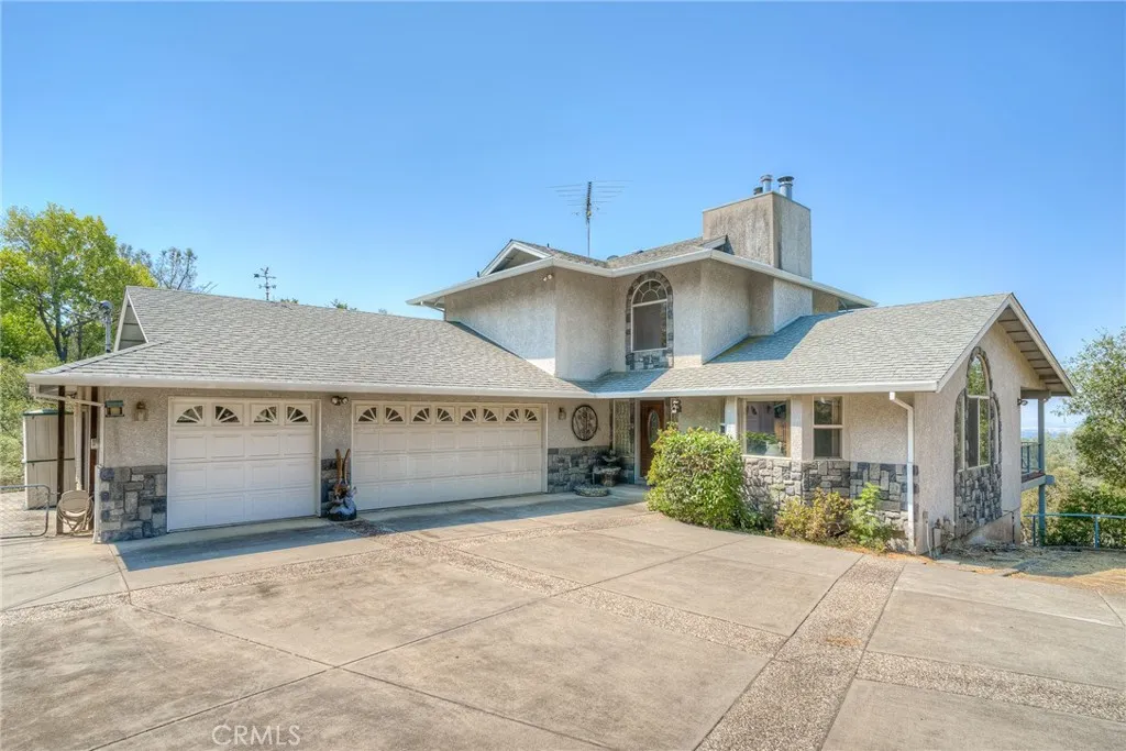 Elevate Your Lifestyle at 5 Hill Drive - Nestled on a sprawling 6.45-acre estate in Oroville. This exquisite three-story home, built in 1992 by renowned builder John Starr, offers 3,246 sq ft of refined living with breathtaking panoramic views of the Sutter Buttes and stunning sunsets. The main floor welcomes you with a spacious living room centered around a fireplace enhanced by built-in speakers, creating a warm and inviting atmosphere. This level also features a private office, a large bedroom, a full bathroom, a beautiful kitchen, and a convenient laundry room, all thoughtfully designed for everyday comfort. The sliding glass doors open to a very large, very comfortable 2-tiered deck that looks out over the valley. Upstairs, the huge master suite serves as a tranquil retreat complete with its own stone hearth, flooded with natural light from expansive full-length windows the perfect spot to savor serene views and spectacular sunsets. The sellers reported watching 7 different fireworks displays from here last 4th of July! The downstairs area is dedicated to leisure and versatility, boasting a large game room, a third bedroom, bathroom and a bonus space ideal for a home gym, studio, or extra storage. Step outside to any of the expansive decks and experience unparalleled outdoor living that captures the beauty of Orovilles landscape. Just minutes from the lake, this estate offers easy access to boating, fishing, and nature walks. Thoughtful details abound throughout the home, including a maintenance-friendly Leaf Filter gutter system (with transferable warranty), a whole