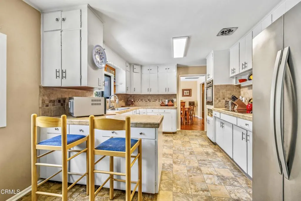 Experience the harmony of classic mid-century modern design and lush garden tranquility at 18841 Lahmon Lane. 3 bedroom, 2.25 bath home has had many upgrades including new dual paned windows, restored hardwood floors, low maintenance cement patios and a Cougar 5th wheel with utilities used as a guest house in the past. Mid-century modern interior details include a front door with unique heart-shaped window and original wood paneling accents in the living room. The brick fireplace has been upgraded to a convenient electric fuel source with a heatolator. There is also forced air heat. The vintage kitchen has a new oven with ceramic cooktop and a breakfast nook that captures morning sun. Beautifully remodeled bathroom off of the laundry room has a walk-in shower. Owner has removed walls in the living space to create an open-concept interior with many windows offering garden views from every angle. In the private backyard you'll find flourishing native plants, vibrant blooms and mature trees provide year-round color. There are multiple outdoor entertaining zones including a shaded pergola, Zen-inspired sitting areas and places to soak in the sun. Also included is a Peak 11,200 KVA generator. Come see this stylish vintage escape grounded in nature and nostalgia.