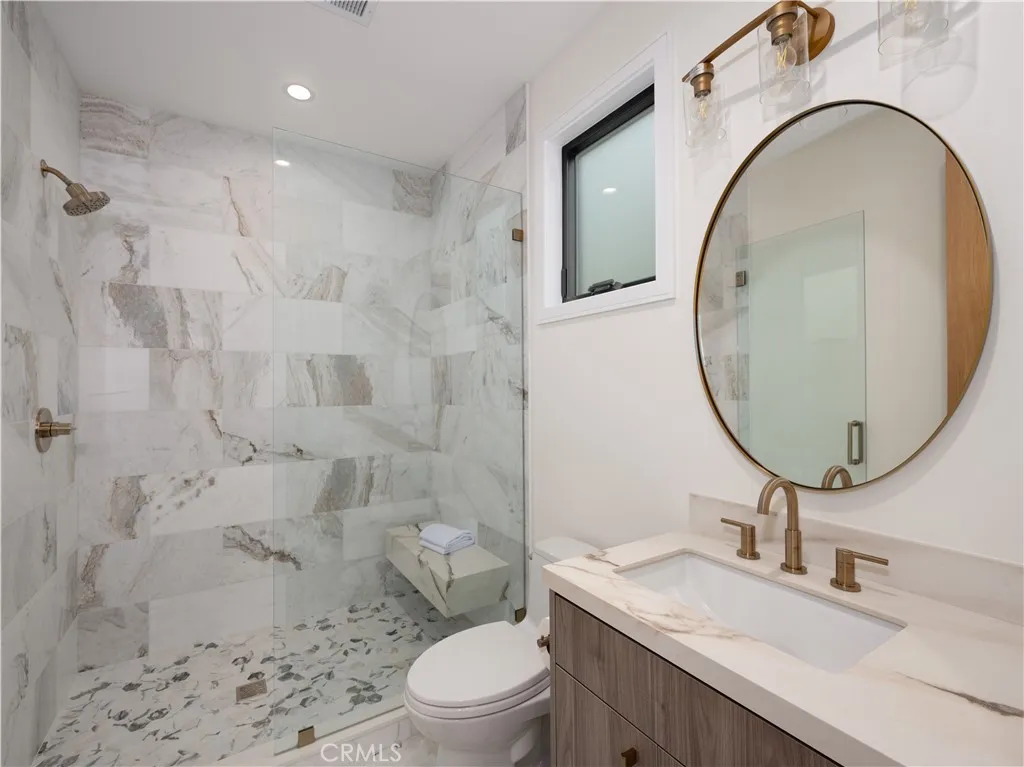 Located in the highly coveted Poets Section of Manhattan Beach, this newly built coastal contemporary residence is a stunning blend of architectural elegance and refined design. Created by a distinguished local builder Fasano Enterprise, Inc. This home offers sweeping ocean views and sophisticated indoor-outdoor living. The open-concept layout features 10-foot ceilings, French white oak flooring, natural stone fireplaces, and custom rift oak doors throughout. A 24-foot La Cantina glass wall opens to a 700 sq. ft. terrace with a Hot Tub + Cold Plunge, cedar-lined sauna, built-in ceiling heaters, and integrated speakersperfect for elevated outdoor enjoyment. The chefs kitchen is equipped with a 10-foot island, walk-in pantry, and 16-foot wet bar, ideal for culinary creativity and entertaining. A floating staircase with a dramatic 20-foot stone wall leads to the lower level, where four generously sized bedrooms are situated, including a luxurious primary suite with access to a serene garden retreat. The landscaped backyard is framed by a custom pergola and lush greenery, offering a peaceful and private setting. Close proximity to beaches, dining, shopping, and highly regarded schools enhances the appeal of this exceptional home.