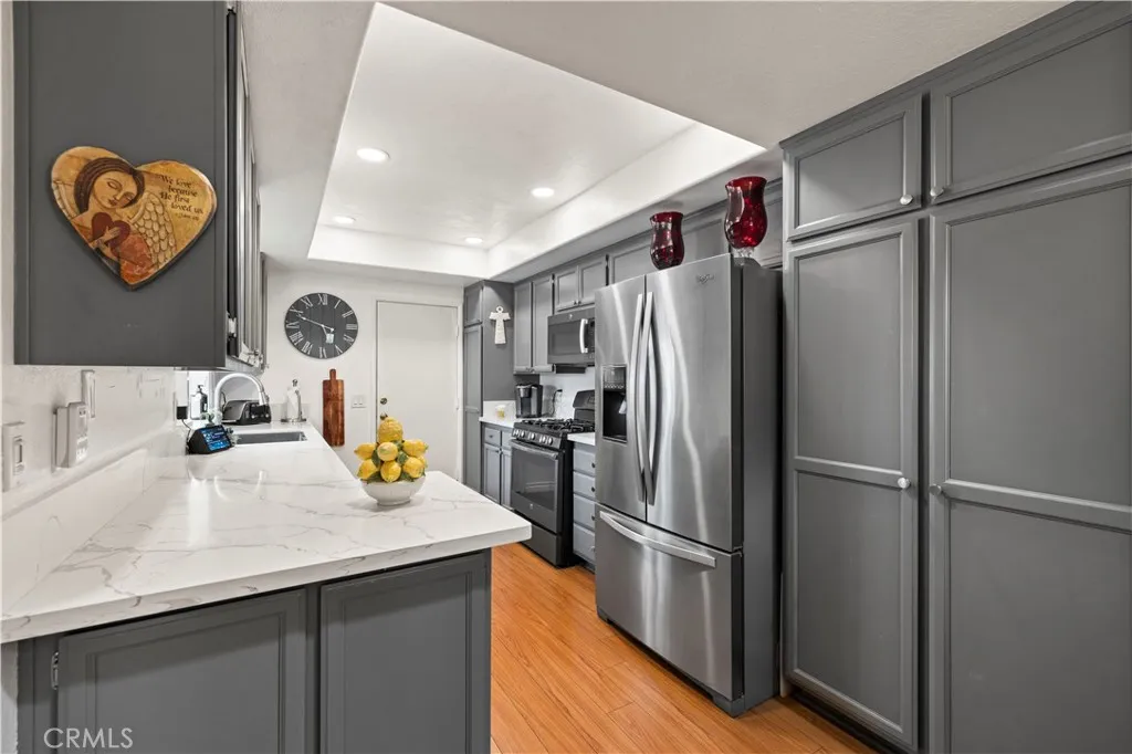 Charming single-story home meticulously cared for located in a guard-gated community. This is one the newest homes, built in 1986, in Friendly Valley. This much sought-after floorplan has a bedroom on opposite sides of the home and includes a direct access two-car garage. Outstanding location with no rear neighbors. The primary bedroom with an ensuite has a walk-in closet, an updated vanity, and bathroom. Many other impressive updates include - Interior paint, newer wood flooring, kitchen cabinets, quartz countertops, stainless steel appliances and recessed lighting, and HVAC system. Be sure to check out all the Friendly Valley Country Club amenities. Some of the indoor facilities include an auditorium, annex, card room, hobby room, ceramics studio, conference room, fitness center, game room, library, poker room, and woodshop. Outdoor facilities and activities include - a swimming pool, spa, basketball court, golf course, golf lounge, lawn bowling, picnic areas, RV parking, shuffleboard, horseshoes, ping pong and so much more.