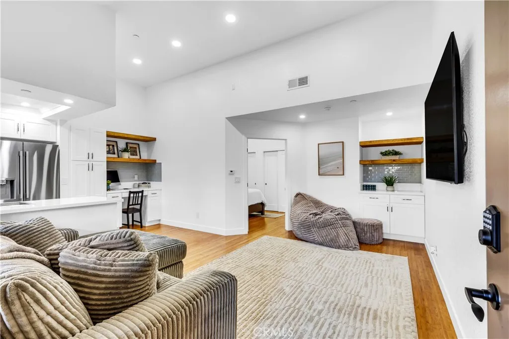 Welcome to 1062 Calle Del Cerro #1222, an upgraded upper-level condo in the desirable Vista Pacifica community of Rancho San Clemente. This 1-bedroom, 1-bathroom home offers a thoughtfully updated living space with premium features throughout. Enjoy bamboo flooring, 10-foot ceilings, and upgraded recessed lighting with dimmers that create a bright, inviting atmosphere. The living room includes a flush-mounted TV with concealed wiring, and the TV is included with the purchase. The kitchen is enhanced with new premium LG appliances, granite countertops, upgraded cabinet storage, and added pantry cabinets with slide-out drawers for extra organization. A built-in computer desk with storage provides a perfect workspace with beautiful handmade pine shelves. The bathroom features a stand-up glass tile shower, and the bedroom offers upgraded closet organizers, handmade pine shelves, and storage. A new double-stack washer and dryer is also included. This unit comes with an upgraded garage featuring custom cabinets, workbench, upgraded flooring, and blacked-out rafters a fully functional and polished space for storage and projects. Community amenities include two pools, spas, clubhouse, playground, and lush walking paths with waterfalls and streams. Ideally located just minutes from San Clementes beaches, hiking trails, Lifetime Fitness, shops, restaurants, and Dana Point Harbor. Dont miss this opportunity for a move-in ready condo with resort-style living in one of San Clementes most sought-after communities!