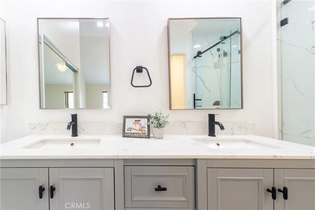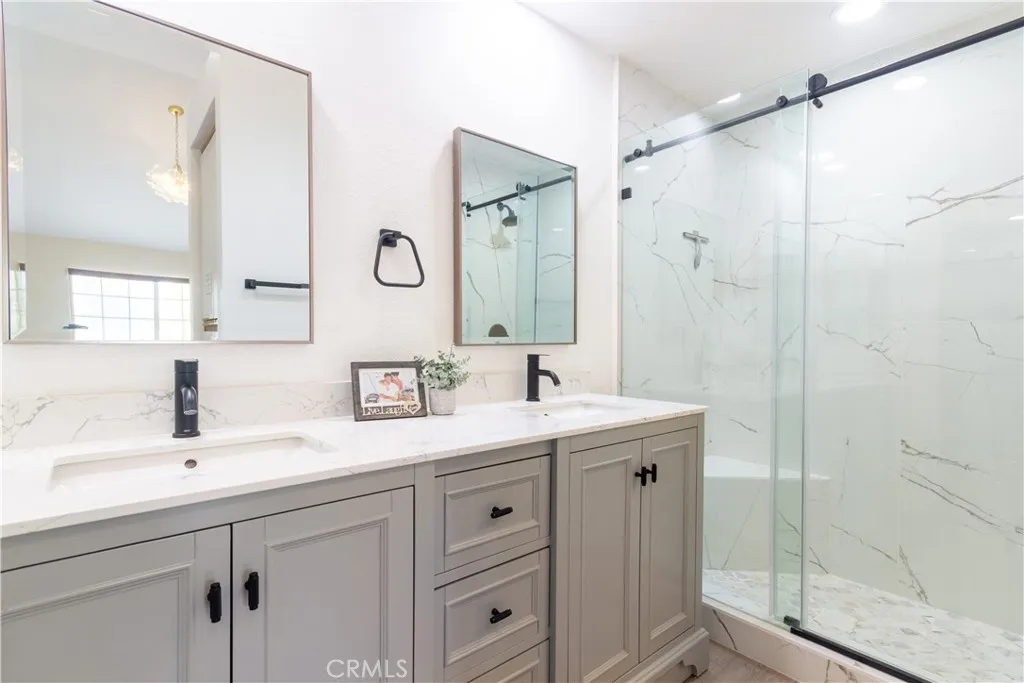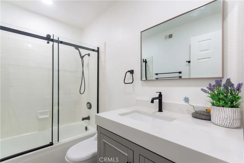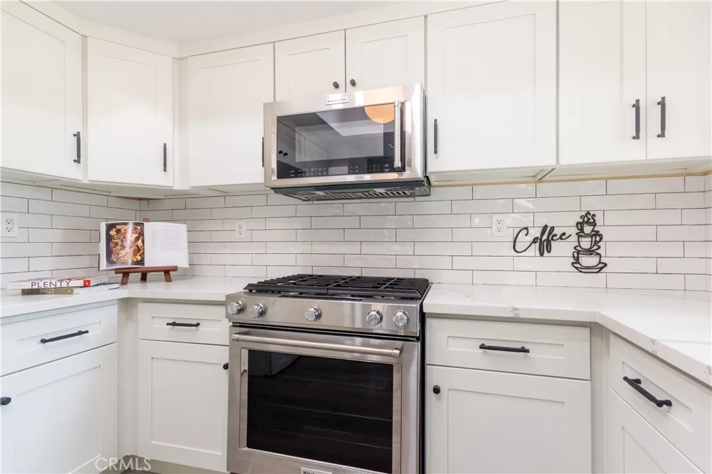 Welcome to this is a beautiful END unit 2 bedroom, 2 bath condo in the highly desired Gated community of Viewpoint in Anaheim Hills. **Spacious and Clean 2 Bedroom, 2 Full Bath and 1 Car Garage with assigned covered Parking space right out the front door. **All living space is on One level and NO neighbor ABOVE or BELOW. **Beautiful Laminated wood flooring is installed throughout the home, Dual Pane Windows, AND RECESSED LIGHTING has been added THROUGHOUT THE HOUSE for a clean, modern look. ** Central Air and Heating. **Open floor plan of home with the Cathedral Ceiling makes the home airy and full of natural light. **The Home features - ** Upgraded Gourmet Kitchen with Beautiful Brand New Quartz counters, All Cabinets, Recessed lights, Includes a Modern Sink and Faucet. **Kitchen appliances (Stove (slide in stove), Microwave, and Dishwasher.) replaced earlier this year with top-tier KitchenAid models. ** The Kitchen has Plenty of Counter Space ** Master bathroom has recently upgraded Double Sink Vanity, and Full-size Shower Stall. ** Beautifully upgraded, the Second Bathroom Showcases a Brand-New Seamless Shower Door with a Magnetic Closure that Enhances both style and Functionality. ** Master bedrooms have built-in closet Organizers. ** The Inside Laundry room features Stylish, Brand-New Barn Doors. ** The Community has well-maintained Landscaping, Spas, recreation area with a heated Pool, Fire pit, Barbeque area, Two Gated entrances. *** Great schools including Canyon Rim Elementary School, Canyon High and El Rancho Charter School. **Stop by and see the Beautiful Neighbo
