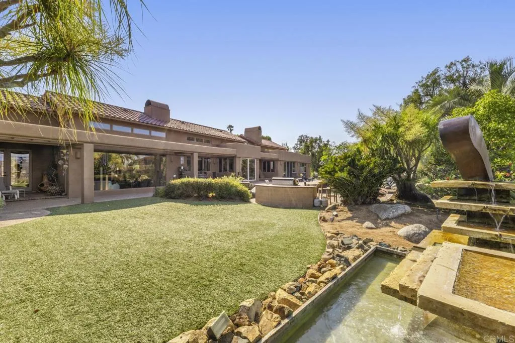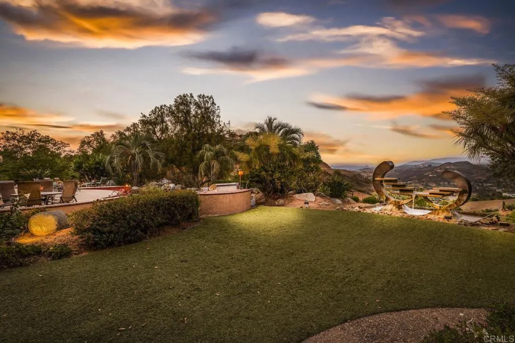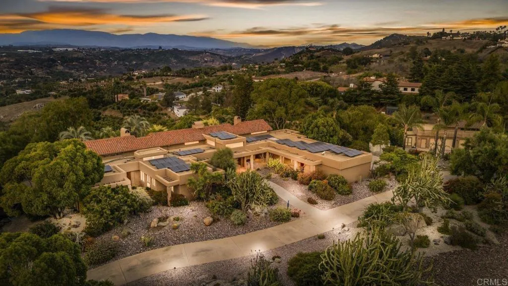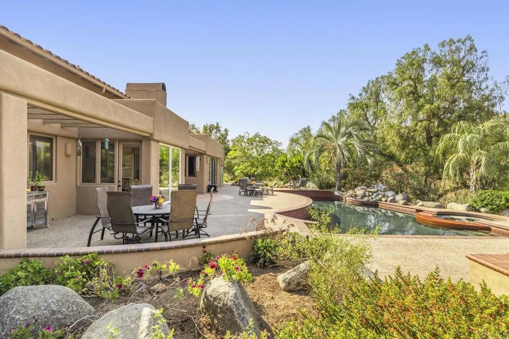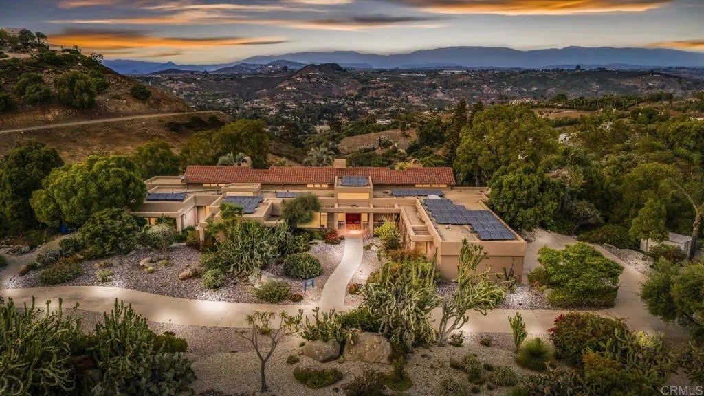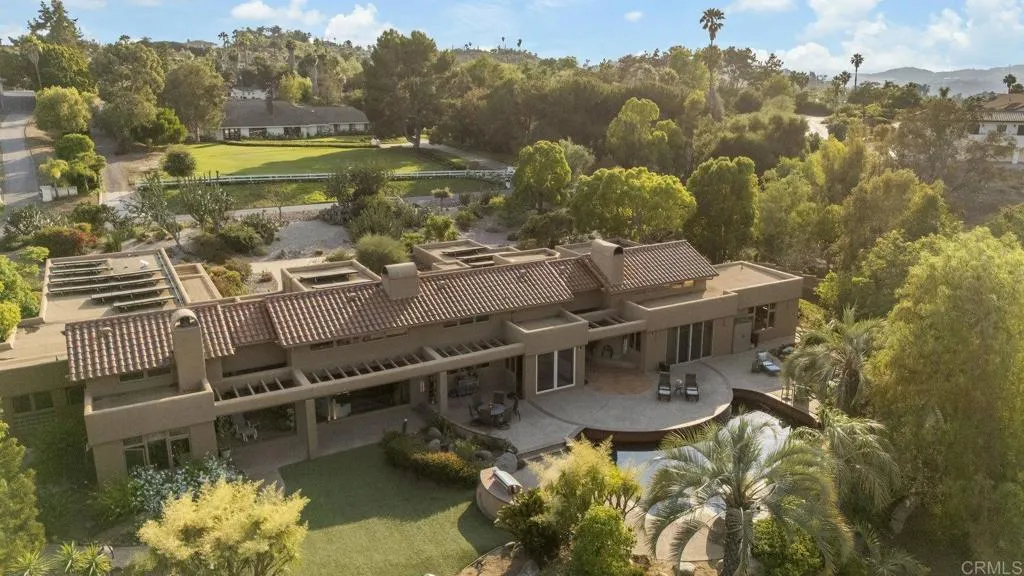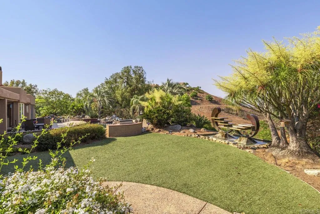 One of a kind custom single story homenestled in a tranquil setting, surrounded by bountiful gardens! No HOA This magazine worthy Sante Fe style ranch house features 4 bedrooms, 6 bathrooms spread out over 5,817 of meticulously designed living space. As you step into this architectural masterpiece built naturally into the surrounding landscape, you will be amazed by the 5.89 acres ofawe inspiring views.The chef's kitchen is a culinary haven, featuring a large kitchen island, SubZero fridge, Wolf Appliances oven, DCS cooktop, and ample space to spread out and make your favorite meal.Host unforgettable events in the multiple living spacesor take the festivities outdoors to the entertainer's paradise,spacious patio, Mark Stasz custom sculptureand water features with aninviting in-ground saltwater pool & spa. Luscious landscaping includes fully irrigated drought tolerant xeriscaping,protea plants andplus orchard featuring citrus and fig trees. After a long day, relax and unwind in the resort like oversize primary retreat featuring soaking tub, cedar lined walk in closet, sauna providing a sense of solitude. Enjoy energy efficiencies with owned solar panels and full backup generator keeping your electricity bills at a minimum. Tailor made oversized garages with custom car lift and fully operating 1200 square foot woodshop, provides plenty of room to store all over your vehicles, toys while enjoying your favorite hobbies.Dont miss the opportunity to own a one-of-a-kind oasis that blends classic California living with extraordinary beauty. 30663 Via Maria Elena is not just a home