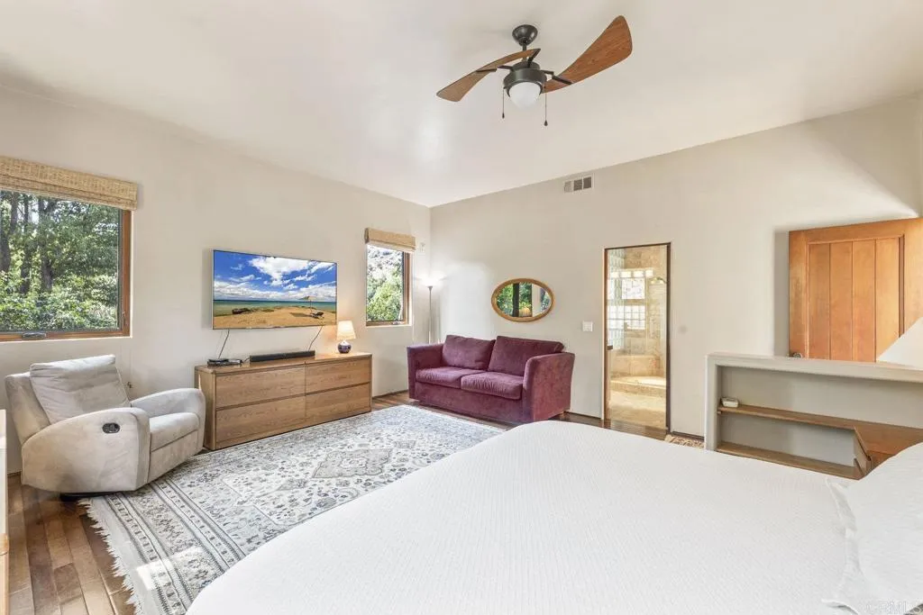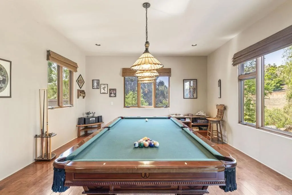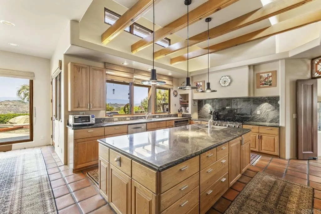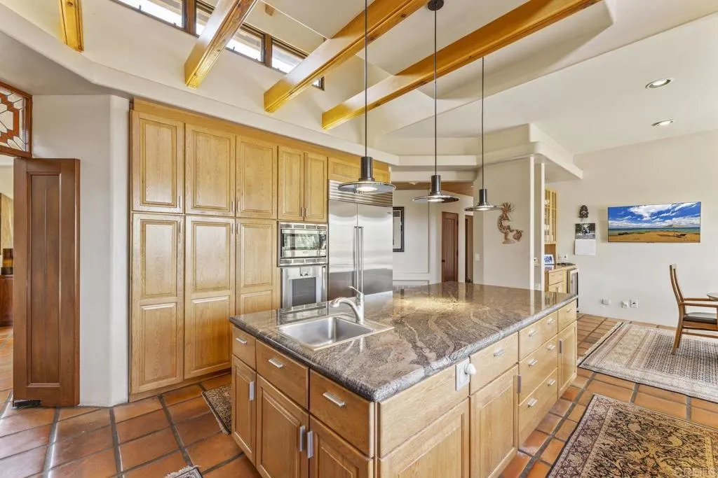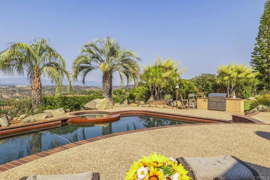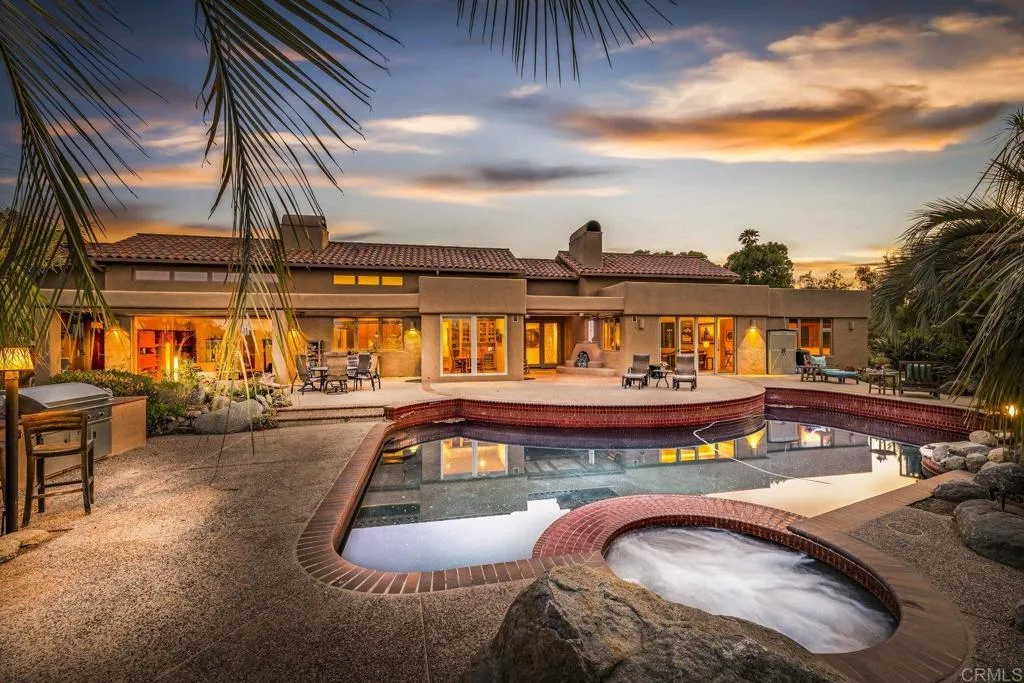 One of a kind custom single story homenestled in a tranquil setting, surrounded by bountiful gardens! No HOA This magazine worthy Sante Fe style ranch house features 4 bedrooms, 6 bathrooms spread out over 5,817 of meticulously designed living space. As you step into this architectural masterpiece built naturally into the surrounding landscape, you will be amazed by the 5.89 acres ofawe inspiring views.The chef's kitchen is a culinary haven, featuring a large kitchen island, SubZero fridge, Wolf Appliances oven, DCS cooktop, and ample space to spread out and make your favorite meal.Host unforgettable events in the multiple living spacesor take the festivities outdoors to the entertainer's paradise,spacious patio, Mark Stasz custom sculptureand water features with aninviting in-ground saltwater pool & spa. Luscious landscaping includes fully irrigated drought tolerant xeriscaping,protea plants andplus orchard featuring citrus and fig trees. After a long day, relax and unwind in the resort like oversize primary retreat featuring soaking tub, cedar lined walk in closet, sauna providing a sense of solitude. Enjoy energy efficiencies with owned solar panels and full backup generator keeping your electricity bills at a minimum. Tailor made oversized garages with custom car lift and fully operating 1200 square foot woodshop, provides plenty of room to store all over your vehicles, toys while enjoying your favorite hobbies.Dont miss the opportunity to own a one-of-a-kind oasis that blends classic California living with extraordinary beauty. 30663 Via Maria Elena is not just a home