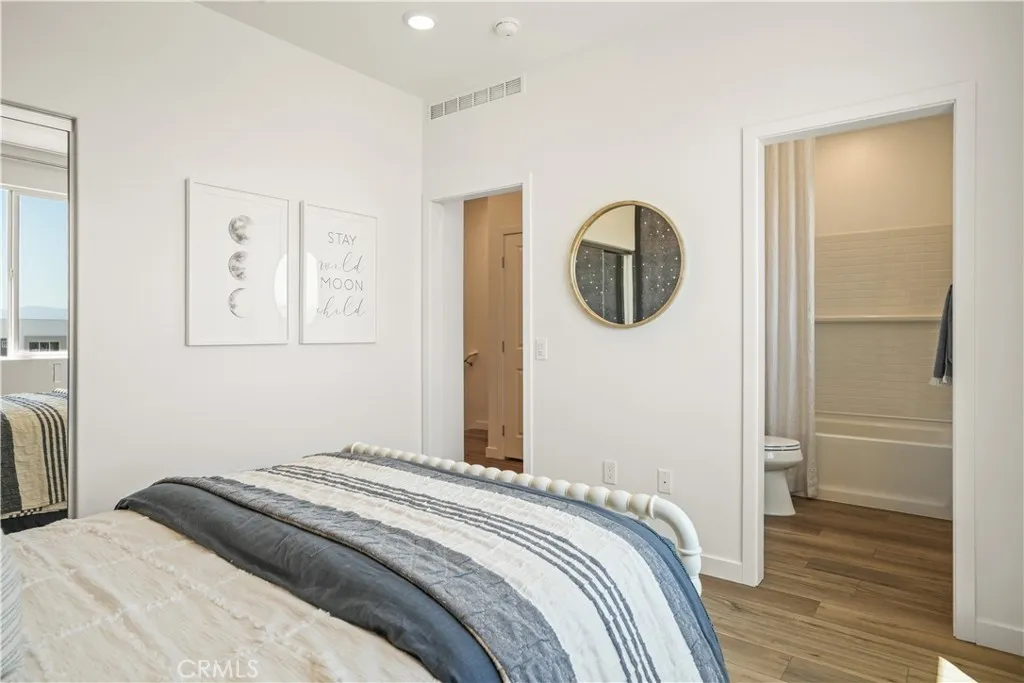 Welcome to 27306 Bear Creek LanePlan?1987an elegant three-story townhome in KB?Homes Iris at Valencia community, with approximately 1,987?sq?ft, 3 bedrooms, 3.5 baths, and an attached two-car garage. Thoughtfully designed with open living areas and 9-ft ceilings, the home features luxury vinyl plank flooring throughout, a gourmet kitchen with Blanco Maple Silestone countertops, island with USB charging port, Samsung stainless steel appliances including a smart induction range, and shaker-style white cabinets with chrome accents. The expansive primary suite includes a clear glass shower, dual under-mount sinks with chrome Moen fixtures, and generous walk-in closet. Secondary bedrooms have mirrored wardrobe doors; all baths have Silestone counters and energy-efficient Kohler fixtures. Additional upgrades include a prewired EV charging station, designer lighting, brushed nickel pendants, and a leased 8-panel Sunrun solar system. Plan?1987 is an ENERGY?STAR certified home built for modern, healthy living. Situated within Valencias premier master-planned community, residents of Iris enjoy large private front patios, resort-style amenitiesincluding swimming pools with cabanas and lounges, recreation center, garden, and an adventure playgroundover 30?miles of interconnected trails for walking, biking, or NEV use, scenic mountain views, and proximity to award-winning Saugus Union and William S.?Hart schools. Convenient to I-5, Hwy?126, local universities and hospitals, and retail/dining/entertainment at Westfield Valencia Town Center, The Patios, and Six Flags Magic Mountainthis ho
