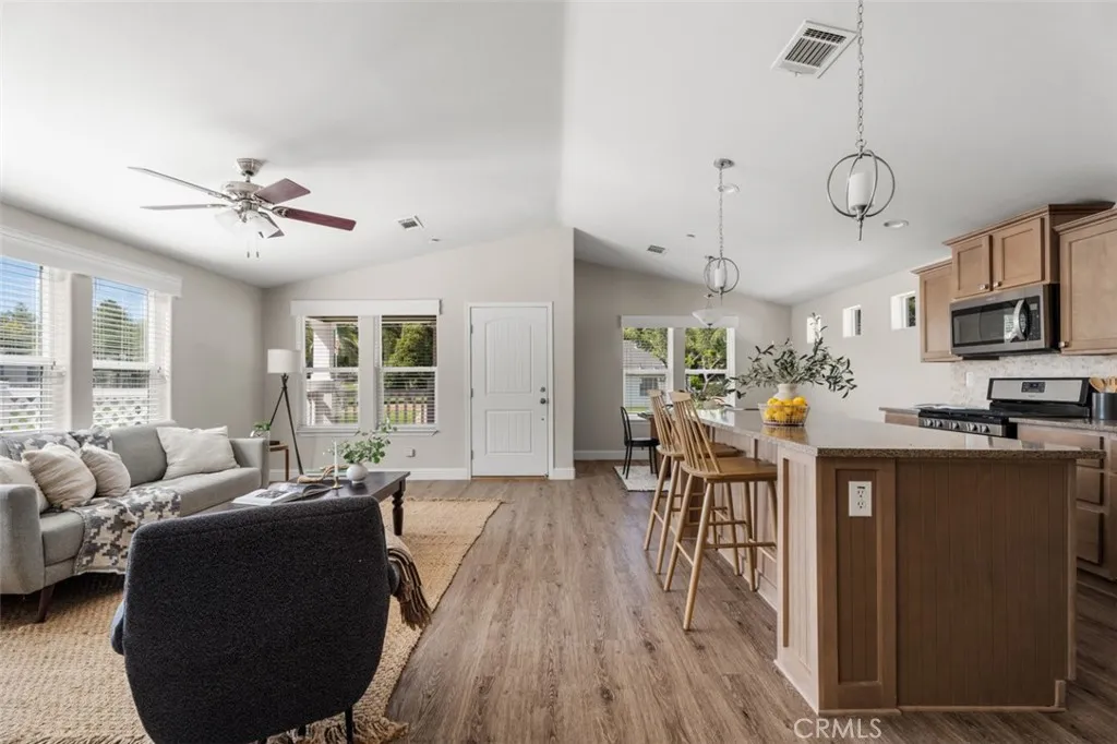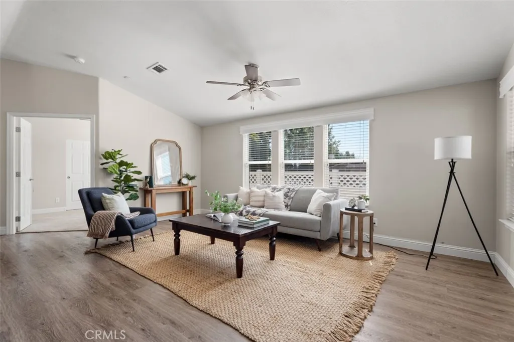 Great location within Oak Tree Ranch, next to a vacant lot & backing to the seasonal creek creates a uniquely private homesite! Beautiful open floor plan! This 2018 manufactured home features 3 bedrooms, 2 baths,1420 sqft with attached 2 car garage and professionally landscaped and fenced back yard! Located close to the community pool ,club house, mail boxes and guest parking! Enter directly into the living room with Kitchen and dining room creating a spacious open floorplan! Transom windows let in an abundance of natural light and combined with the high ceilings create a light, bright and spacious interior. The garage has direct access to the house through the laundry room. Luxury wood plank vinyl flooring throughout with carpet in the bedrooms. Ceiling fans in all bedrooms! Guest bath has a tub shower combo and tiled backsplash on the single sink vanity. Master bath has a large, beautiful step in shower with glass doors and separate toilet room, cabinets for linen and a vanity with storage. The Kitchen features recessed lighting , gas cooktop and oven, dish washer, microwave , stainless steel double sink. Large island with breakfast bar and contemporary pendant lighting fixtures. Oak Tree Ranch is a beautiful, all age community with community pool, bbq area, car washing station, dog park, picnic area, play ground, stage for special events, lovely remodeled club house with library and full kitchen. Manicured lawns and beautiful park like setting welcome you home! There are areas for visitor parking for family and friends. Come and enjoy the lifestyle you've been looking fo