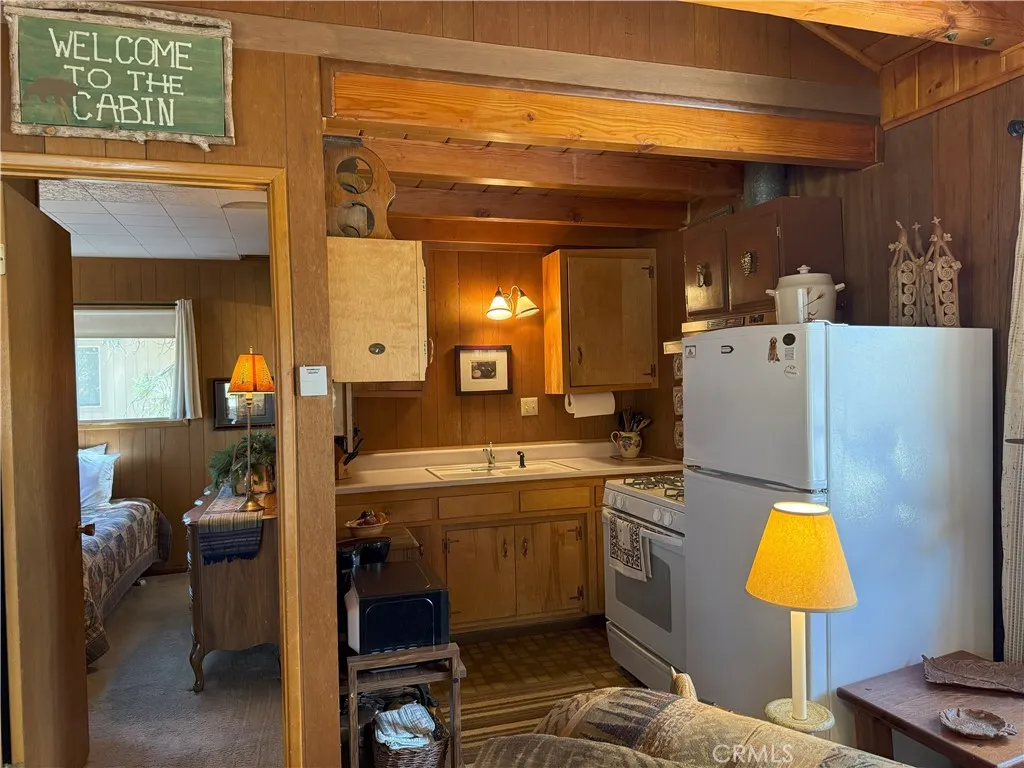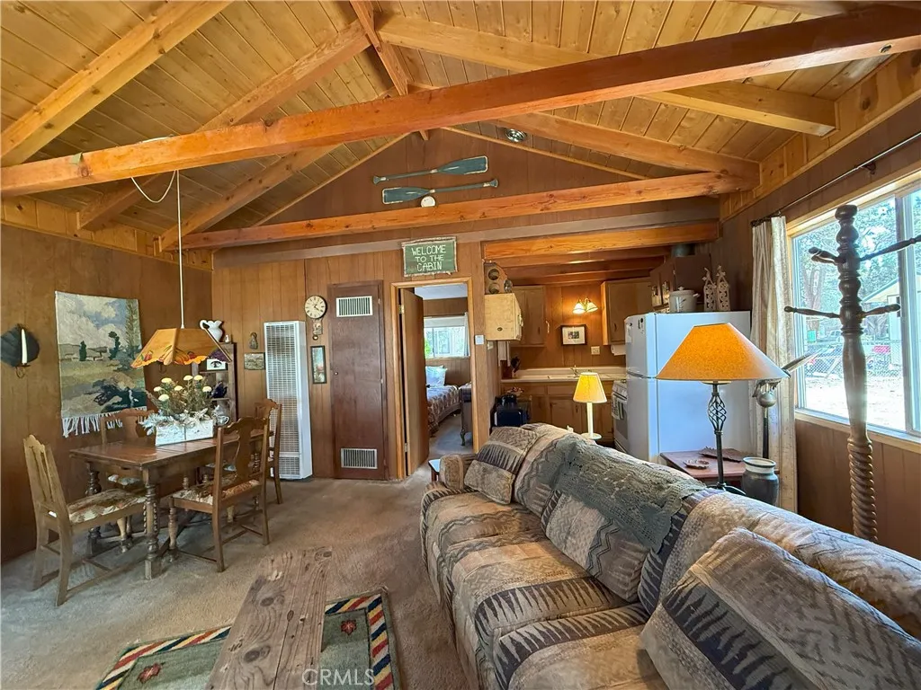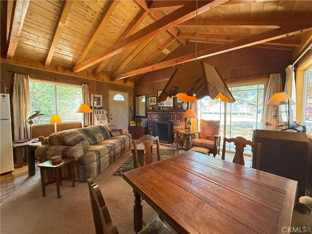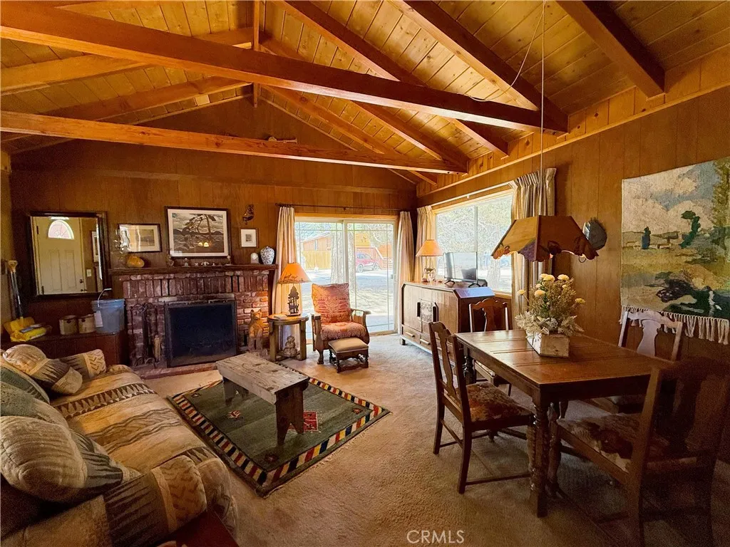 Escape to this storybook cabin tucked away in the scenic beauty of Big Bear City. This 1-bedroom, 1-bathroom furnished retreat offers 504 square feet of charm and comfort, perfect as a weekend getaway or peaceful year-round hideaway. Inside, the spacious family room steals the show with its exposed wood beams, vaulted ceilings, and a welcoming fireplace that invites you to cozy up on chilly mountain evenings. Step outside to a generous 6,750 square foot level lotoffering endless potential. Whether you're dreaming of adding a garage, expanding the living space, or creating the ultimate outdoor hangout, the possibilities are yours. Enjoy recent upgrades including a brand-new roof, fresh exterior paint, and a new gravel driveway. Surrounded by the natural beauty of the mountains, this cabin offers the perfect place to enjoy all four seasonswhether it's snow in the winter or sunshine-filled summer adventures on the lake or hiking and off-roading on the surrounding mountain trails. Located in a peaceful Big Bear City neighborhood, just minutes from the lake, hiking, and ski resorts, this cabin is a rare find with plenty of room to make it your own.