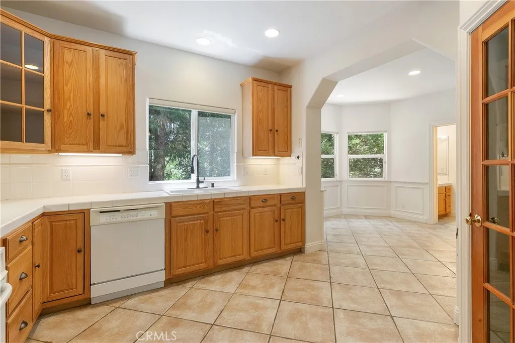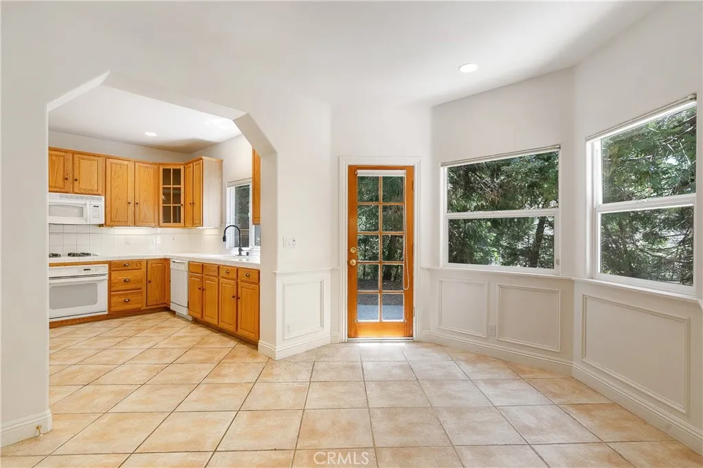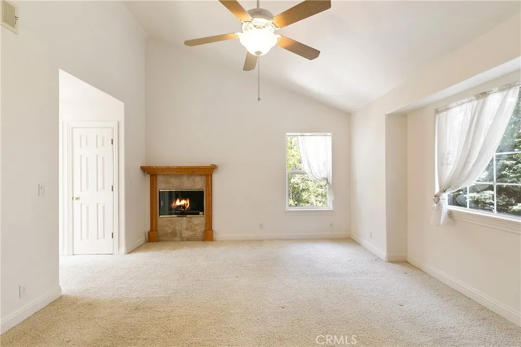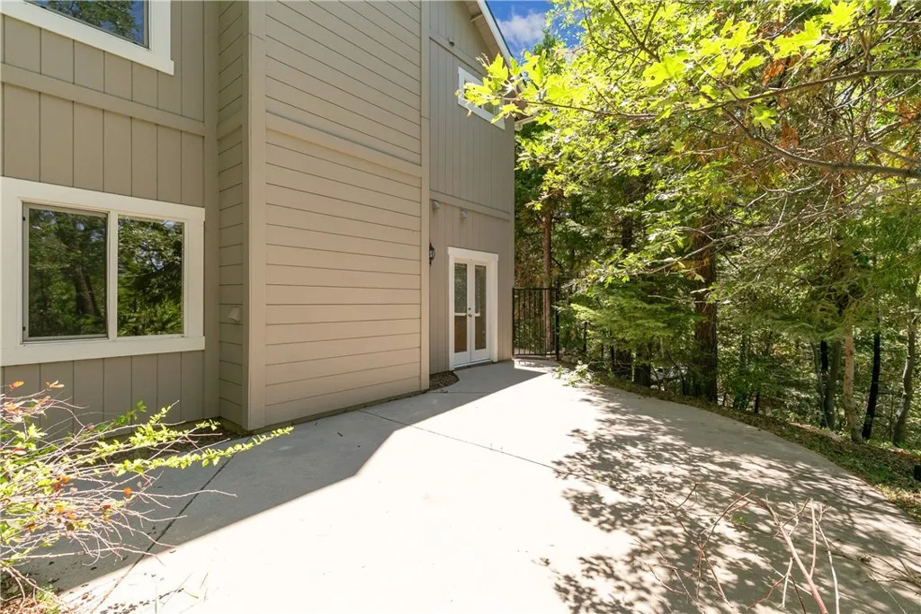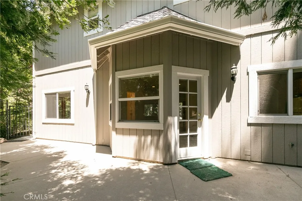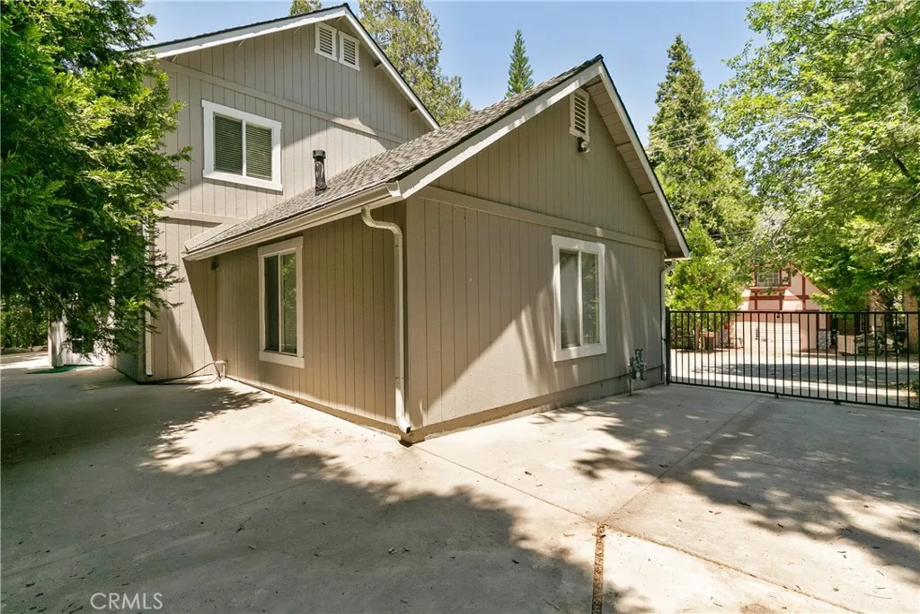Welcome to The Trailside Hideaway a storybook mountain retreat nestled at the end of a peaceful cul-de-sac, just moments from the magic of Lake Arrowhead and the gateway to Kuffle Canyon. Whether you're seeking quick commuter access via Hwy 18 or a spontaneous walk to lake trails, this location offers the best of both worlds adventure at your doorstep and convenience around the corner. This enchanting home comes with full Lake Rights and is surrounded by towering pines and hiking trails, making it an outdoor lovers dream. Nearly level entry with a gated, extra-long driveway offers room for your boat, RV, or weekend toys, while the oversized two-car garage provides tons of storage for all your gear. Only a few gentle steps lead to a charming covered front porch the perfect perch for morning coffee. Inside, the sun-soaked living room is both cozy and expansive, framed by picture windows and anchored by a classic stone fireplace. Just off the main living space, you'll find a dreamy home office with French doors ideal for remote work or easily transformed into an extra guest room. The dining area opens to a kitchen filled with warm knotty pine cabinets, exuding rustic charm and function. Step out back to your private fenced yard, where a concrete patio and grassy lawn offer the perfect backdrop for summer evenings under the stars, lawn games, or roasting marshmallows. Upstairs, youll discover three serene bedrooms and two bathrooms. The spacious primary suite is a retreat in itself, featuring a walk-in closet and a private en suite bath with dual vanities. Whether you're lo