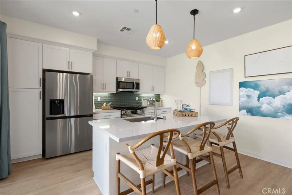 Mirasol presents a unique living experience, blending innovation, minimal upkeep, and the ease of a lock-and-leave lifestyle within a gated community. The exquisite Plan 3 MODEL HOME features 1,401 square feet of meticulously designed space. This home boasts two bedrooms, two and a half bathrooms, an expansive open kitchen that leads to a charming deck, a dining area, and a great room. Additionally, it offers a two-car tandem garage. This residence is enhanced with premium upgrades and finishes from the design studio, including LG stainless steel kitchen appliances, sleek quartz countertops, luxurious vinyl plank flooring, and a LG stackable washer and dryer, ensuring both style and functionality. With convenient access to shopping, major thoroughfares, Mirasol is the place to live. Pack your bags and move right in!