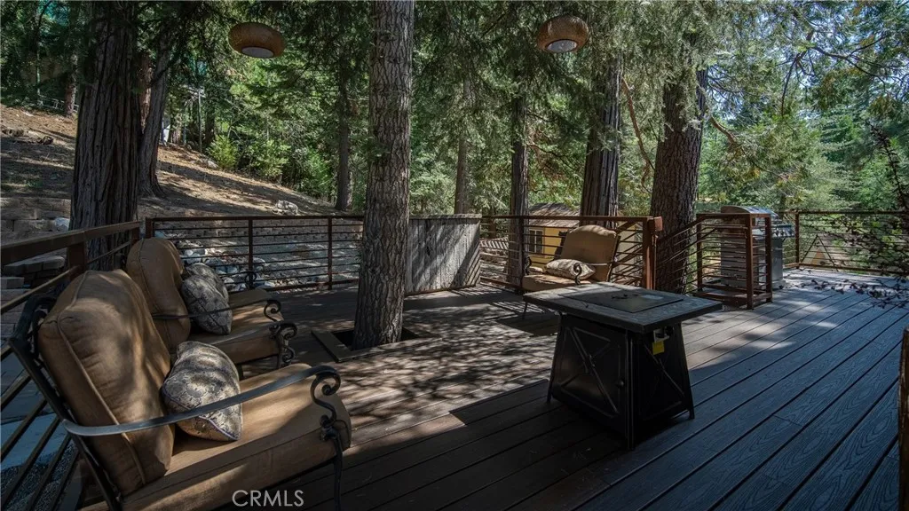 Modern A-Frame Cabin with Lake Arrowhead Rights, A Fully Furnished Retreat in Arrowhead Woods. Welcome to your modern mountain escape in beautiful Lake Arrowhead. Tucked away in the exclusive Arrowhead Woods community, this fully furnished A-frame retreat combines timeless cabin charm with thoughtful modern updates and includes full lake rights. Step inside to soaring vaulted ceilings, a wall of windows that frames the forest views, and an open-concept great room anchored by a stunning floor-to-ceiling stone fireplace. The spacious kitchen features quartz countertops, stainless steel appliances, and plenty of room for gathering with family and friends. With 3 bedrooms, 3 bathrooms, and a versatile loft, theres space for everyone to relax and recharge. Smart home features like a whole-house sound system and smart thermostat make mountain living effortless. Outside, a newer Trex wraparound deck invites you to take in the fresh mountain air and sweeping woodland views. Entertain under the stars on the rear terrace with built-in lighting, a fire pit, and a jacuzzi pad ready for your hot tub. For those dreaming of time on the lake, the seller is also offering a double dock (Dock N-482 Slip A) located in the calm, deep waters of North Bay, one of Lake Arrowheads most desirable areas. Whether youre looking for a peaceful full-time residence, a vacation getaway, or an investment property, this turnkey A-frame delivers it all. Just minutes from Grass Valley Park, Lake Arrowhead Village, and the Lake Arrowhead Country Club. Experience mountain living at its best. View the virtual to