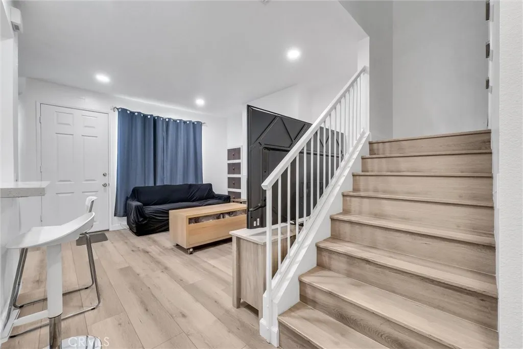 This renovated 3-bedroom condo has beautiful fixtures & finishes, along with lots of storage and a great location. The unit has a private front courtyard where you can grill up dinner or enjoy a quiet cup of coffee in the morning. When you enter through the front door, you'll find an open layout with fresh paint, recessed lighting, wide-plank LVP flooring (no carpets here), a cozy fireplace and two big windows that fill the main level with natural light. The renovated kitchen features stunning quartz countertops, white Shaker cabinetry, stainless appliances, a workstation sink, a dining nook and a breakfast bar overlooking the living room. The main floor also offers a powder room and has direct access to the 2-car garage which includes plenty of storage space & the laundry area. Upstairs, you'll find the bedrooms plus a large loft that includes a skylight and floor-to-ceiling built-in storage. The primary bedroom boasts a spacious ensuite with dual sinks and a step-in glass shower. The guest rooms down the hall both have ceiling fans & ample closet space. This quiet condo community has a gated entry and offers residents amenities like a community pool, meticulously landscaped grounds & guest parking. You'll be just 2 minutes from all the shopping & dining along N Azusa Ave., with top-ranked schools all less than a mile from your front door. You can hop on both the 10 & 210 Fwys in less than 5 mins, or take the MetroLink (5 mins away) for an easy commute!