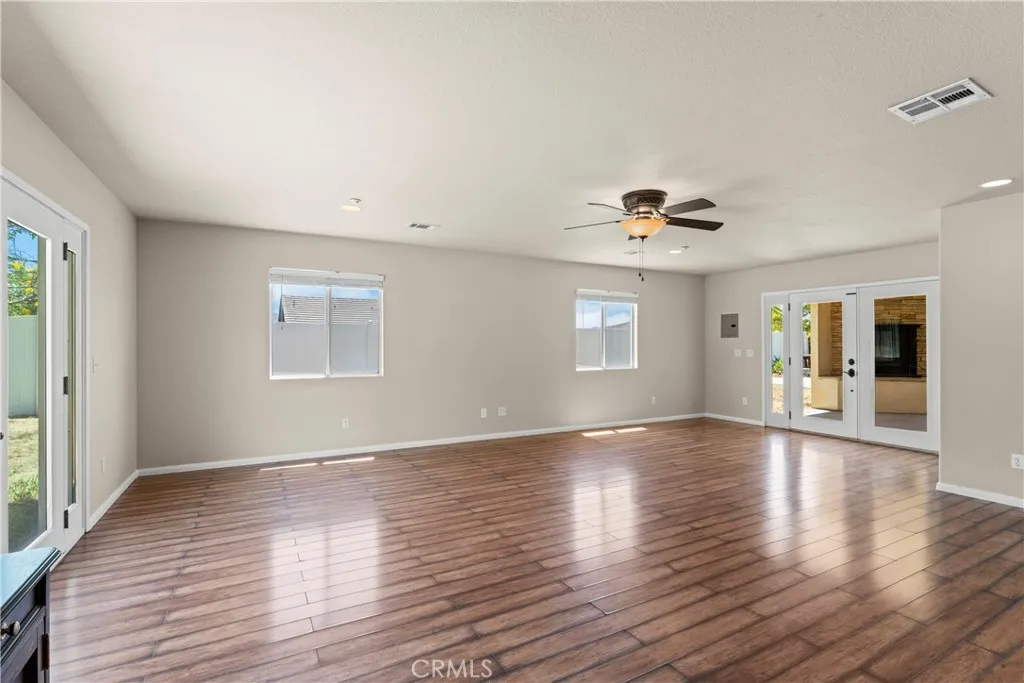 Welcome to this single-story gem nestled on a spacious corner lot in desirable East Highland. This versatile 4-bedroom, 2.25-bath home offers exceptional flexibility with a bonus room that can serve as a primary retreat, den, or a 5th bedroomperfect for growing households or multi-generational living. The expansive primary suite features dual walk-in closets and a spacious layout with retreat potential. The open-concept kitchen and dining area seamlessly flow into the living spaces, while a permitted family room addition with 1/4 bath adds even more space to relax and entertain. Plans for all additions are available on-site. Enjoy year-round comfort on the covered patio complete with an electric fireplaceideal for cozy evenings or summer gatherings. Additional highlights include a separate indoor laundry room, ample RV parking, and the convenience of a corner lot location. Dont miss your chance to own this move-in ready home with room to grow, entertain, and thrive.