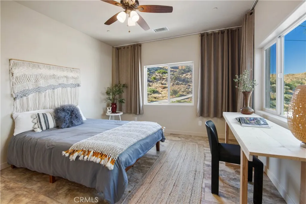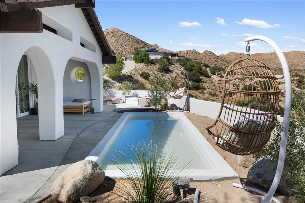 Location, Location, Location! Welcome to this beautiful custom built 4 bedroom 2 bath home in the very highly desired area of Yucca Valley only minutes from the downtown but the feel of living in the rural desert. This home was built perfectly on a hillside with a back yard that is protected by a beautiful rolling hill. This has been 2nd home for the current seller and a very successful Airbnb. The home is fully upgraded with stainless steel appliances with a kitchen that is designed perfectly for cooking and entertaining. The light and bright open floor plan has views from every room making each day feel inspired. The land offers the tranquility that you are looking for in the sought-after Desert. Huge 3 car garage and modern features throughout this home.
