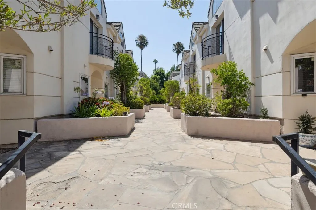 Rare opportunity to own a fabulous multi-level townhome with a private rooftop deck in the heart of Sherman Oaks. Chelsea Court is an intimate 16-unit community tucked behind secure gates, offering a tranquil courtyard with soothing fountains and lush landscaping that sets the tone for peaceful living. This is such a gem that only a few units have sold in the building since 2021. Enter the unit from the courtyard to the light-filled main level featuring an open living and dining area with a cozy fireplace, wet bar, guest powder room, and a private patio perfect for morning coffee or evening lounging. The bright kitchen offers a functional layout that flows easily into the living space that's ideal for entertaining. Upstairs, you'll find two generously sized bedrooms, each with its own en-suite bathroom. The master suite features soaring ceilings, mirrored closet doors, a large bathroom with a separate shower, bath tub, and a balcony overlooking the peaceful courtyard. The second bedroom also boasts high ceilings, mirrored closet doors, window shutters with lots of natural light, and a private bath. A stackable washer and dryer is conveniently located in the hallway between the bedrooms. And theres more, head up to your private rooftop patio, the perfect retreat to relax in the sunshine or unwind under the stars. This home also includes direct access from the gated subterranean garage, two side-by-side parking spaces, guest parking, and a large interior storage closet at the garage entry. All of this just moments from Whole Foods, Equinox, the new Shops at Sportsmens Lodge,