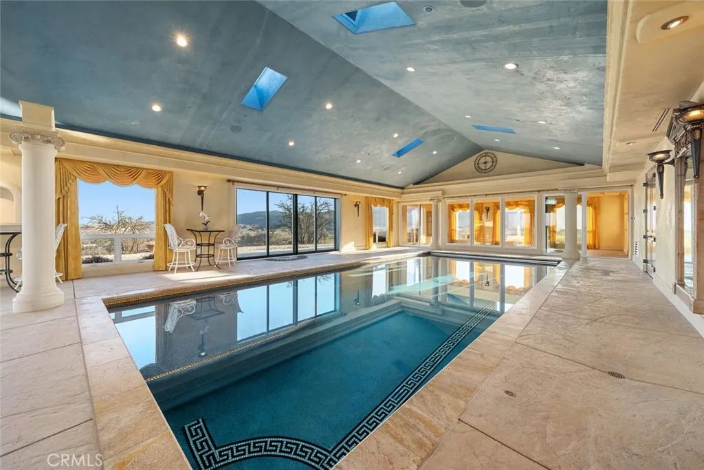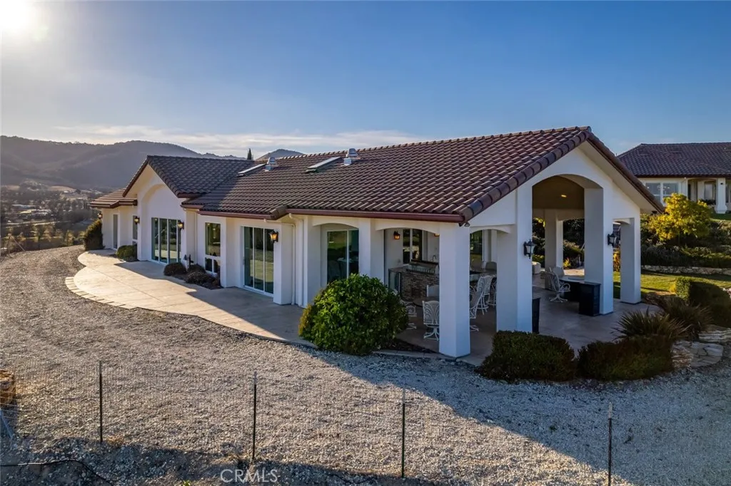 This extraordinary westside legacy estate, just 10 minutes from charming Paso Robles, spans 83 acres of pristine countryside, offering a rare blend of luxury, privacy, and breathtaking 360-degree views. A highly coveted retreat, this remarkable property features a stunning Spanish-style residence, an unrivaled pool house, and a wealth of premium amenities, and is situated in the heart of our award-winning wine country. Perched at the highest point of the estate, the main home is approximately 3000 sq ft of open floorplan and exudes sophistication with 3 large bedrooms, an office, and 3 well-appointed bathrooms. Vaulted ceilings, exposed beams, and custom plantation shutters show timeless elegance, while high-end cabinetry, top-tier appliances, and an open-concept design cater to those who love to entertain. The chef's kitchen comes with Jenn-Air cooktop and doubles ovens, and a large pantry. Additional features include a whole-house water filtration system and an advanced air scrubber HVAC system for high air quality. At the heart of this estate lies an unparalleled 3,200 sqft pool housean architectural masterpiece designed for both relaxation and entertainment. Encased by high-end windows and doors, this space is complete with two heated poolsone a striking visual centerpiece and the other crafted for therapeutic use. Enhancing the experience is a new putting green, an outdoor shower, and a luxurious outdoor kitchen with a BBQ and bar area and built-in heaters. With a fireplace, 2 powder rooms, changing rooms, indoor shower and a washer and dryer, this show-stopping retrea