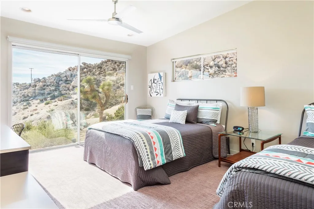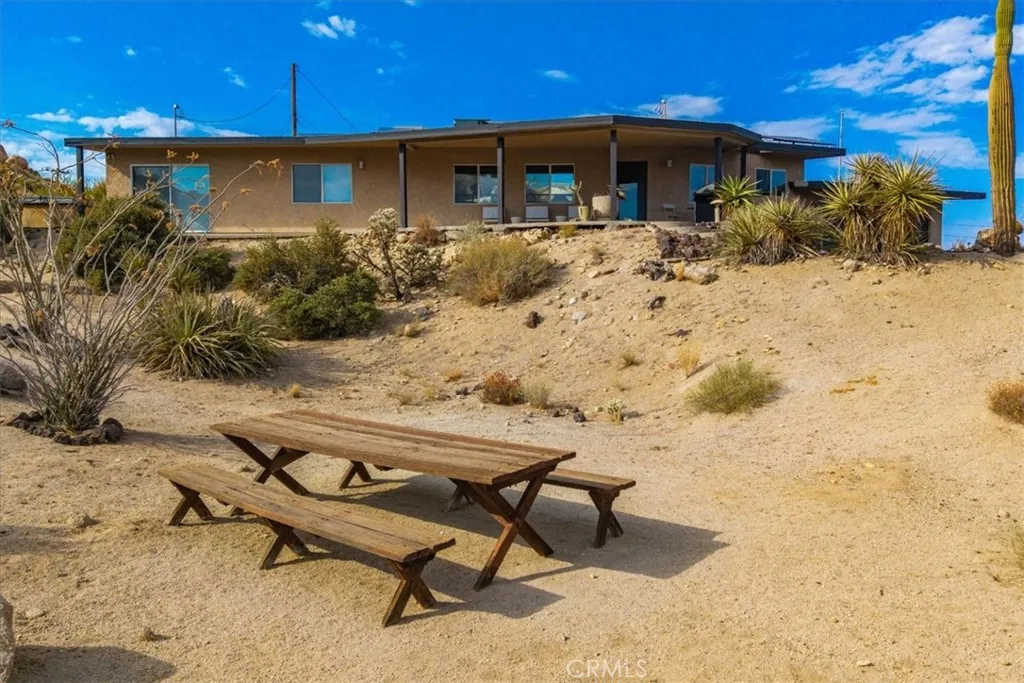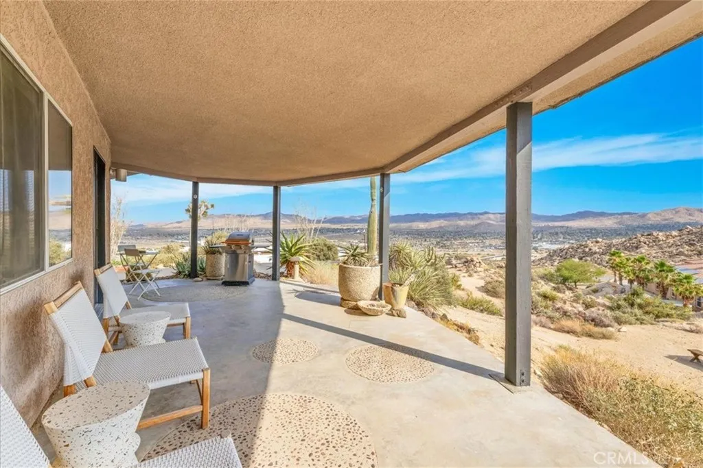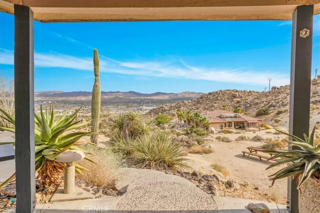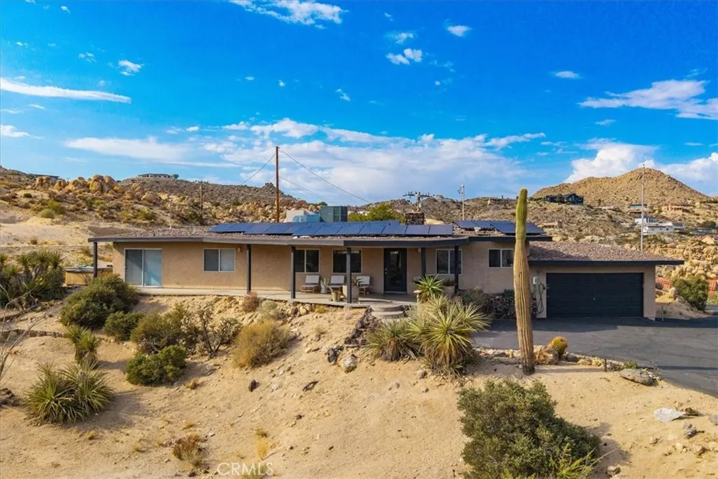 Tucked high in the coveted Western Hills Estates of Yucca Valley, this 2 bedroom, 1 bath gem offers privacy, perched among boulders with sweeping panoramic views and PAID/OWNED SOLAR. A long, private driveway leads to a secluded desert sanctuary where nature, character, and comfort come together beautifully. Step inside to find a home full of vintage charmoriginal architectural details, warm charismatic finishes, and mid-century desert vibes that are complemented by thoughtful modern updates throughout including a well though out, and more than generous walk in closet. The home features windows that frame the surrounding rock formations and expansive valley views and native vegetation, creating a connection between indoors and out. Outside, enjoy the magic of the high desert from a spacious patio ideal for entertaining, relaxing, or stargazing in total privacy. Whether youre seeking a peaceful full-time residence, weekend escape, or a unique vacation rental, this one-of-a-kind property offers the perfect blend of retro charm, modern ease, and unmatched natural beauty. Just minutes from the heart of Yucca Valley and a short drive to Joshua Tree National Park, yet you feel a world away.
