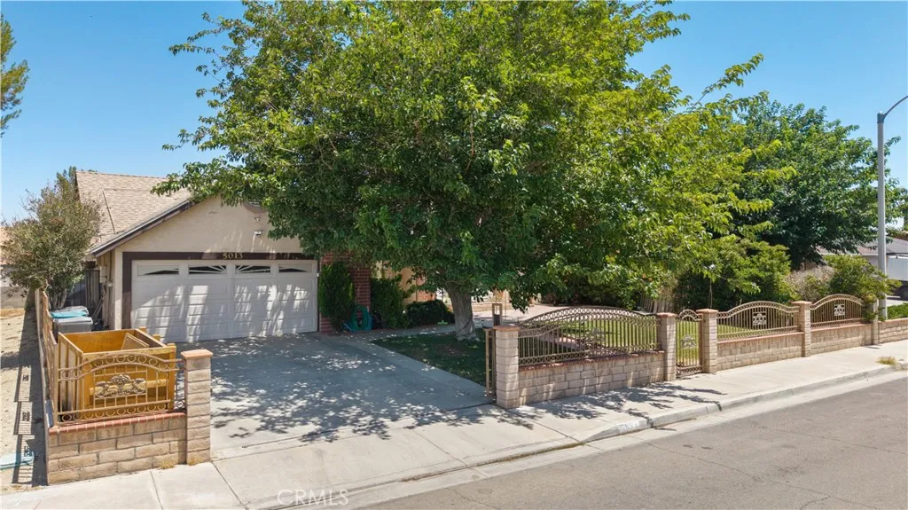 Charming 3-Bedroom, 2-Bath Home in Desirable East Palmdale, house has a NEWER ROOF, SOLAR SYSTEM PAID OFF, this is a standard sale home features three spacious bedrooms and two bathrooms, located in a well-established neighborhood of East Palmdale. The interior offers tile flooring throughout and generously sized bedrooms. The property is surrounded by mature trees and a fully enclosed yard with a combination of masonry and wrought iron fencing for added privacy. Additional highlights include a newer roof and a fully paid-off solar systemboth included in the sale.