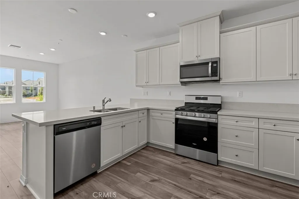 Belmont is a beautiful new condo resort-style community in the newer area of Ontario Ranch. This floor plan offers 1,880 sq/ft of open floor plan spread across 2 floors. Take note of the expansive 9-ft ceilings bringing a nice vaulted feel at the first floor when you walk in. This open floor plan features the living, dining and kitchen downstairs for maximum space in the living and dining areas. Laundry is also upstairs for convenience. Our homes offer brand-new stainless steel appliances including a slide in gas stove, dishwasher and microwave. Additionally, there is a powder room downstairs for convenience. The upstairs leads right into an open loft the family can enjoy and two secondary bedrooms nearby as well. Those two bedrooms share a large hallway bathroom that has a tub/shower combination. The spacious primary bedroom is a short walk away and has a large walk-in closet, adjoining bath with cultured marble counter tops, and dual sinks to round out a great primary bathroom . There is also a large balcony accessible from the loft for you to relax at after a long day. Each home is built with uncompromising energy efficiency in mind such as a tankless water heater, smart thermostat, dual-pane low E glass windows and so much more to help ensure uninterrupted comfort all year long. All that is complemented by a solar energy system as well to maximize savings. Community amenities include several parks, pool and spa, dog park, bbq areas and pickle ball court. Easy access to the I-15, I-10, and 60 Freeways nearby. You are also close to shopping at Costco, 99 Ranch Market, Clo