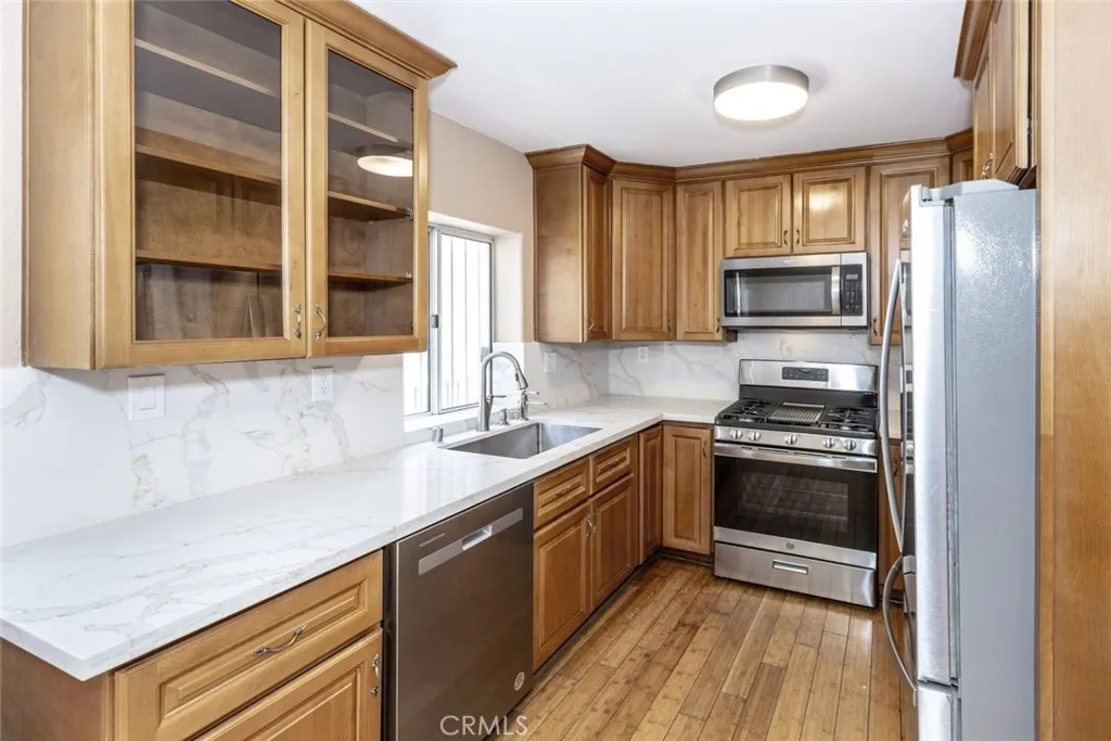 Welcome to 7020 Lennox Ave 3A, a beautifully updated 3 bedroom 3 bath townhouse offering 1,326 sq ft of bright modern living in the heart of Van Nuys. As you enter, you're greeted by an open floor plan filled with natural light, soaring ceilings, recessed lighting, and rich hardwood floors throughout. The spacious living and dining areas flow seamlessly, creating an ideal space for both entertaining and relaxing. The renovated kitchen features granite countertops, stainless steel appliances, and ample cabinetry, designed to impress both everyday cooks and weekend hosts. Downstairs, you'll find a bonus room or office den adjacent to the private 2 car garage, along with laundry hookups and additional storage space. Upstairs, the three generously sized bedrooms offer plenty of closet space and comfort, while all three bathrooms are tastefully finished. Enjoy the perfect balance of comfort and convenience with easy access to major freeways, shopping centers, and local dining. This unit has been beautifully maintained, thoughtfully upgraded, and is ready for you to move right in.