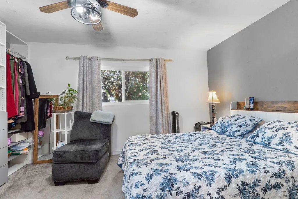 Beautifully Updated Home with Extra Garage, Outdoor Upgrades This home has been thoughtfully upgraded inside and out. The exterior features new stucco and fresh paint, giving it crisp curb appeal. New dual-pane windows let in plenty of light while improving energy efficiency. While the records show 2 bedroom, there has been a 3rd bedroom added. Permits are available. There is a small addition added on off the kitchen providing extra space for whatever you desire, currently used as a dog room. Inside, youll find a bright, inviting space with freshly painted walls, new ceiling fans, and recessed lighting in both the living room and the primary bathroom. The living room also features a cozy wood-burning fireplace, perfect for relaxing evenings and the carpet is only about two years old, offering comfort underfoot. The kitchen includes a new built-in microwave, freshly painted with new cabinet hardware and upgraded lighting, while both bathrooms have been remodeled with modern finishes. The HVAC system is about 1 yr old. Outdoor living is a highlight with a covered patio, a built-in barbecue, and a 120 sq. ft. shed for extra storage. A 2-car attached garage provides convenient parking, and theres also a separate 1-car garage (approx. 523 sq. ft.) with a dedicated work area, perfect for hobbies or extra storage. The home also offers indoor laundry for added convenience. To top it all off, solar panels are completely paid off, giving you energy savings with no extra payment. Move-in ready and packed with upgradesthis home is truly a must-see!