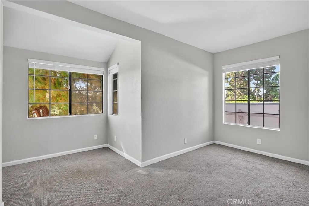 Where else can you find an interior laundry, gas stove and a gated private oversized garage in a condominium??? Just a short walk from the local park is this beautifully reimagined corner unit sitting among canary pines providing cool breezes day and night. Watch the world go by from your patio or relax by the sparkling pool, take a short trip to the Farmers Market or Old Towne Torrance to enjoy the quaint shops and restaurants. Grammercy East is a small, friendly, well maintained complex in a quiet area of southeast Torrance, close to all the shopping, entertainment and amenities this vibrant city has to offer. Since the original owner, it has just been completely updated with new paint and carpet throughout. Each of the 3 bathrooms have been newly accented with modern hardware, new flooring, tub and shower renewal. New ceiling fans carry the modern approach throughout the home; literally no expense was spared to create a clean, modern, private space. The primary en-suite bedroom features a sunny nook for an office, sitting area or reading space. The second, spacious bedroom has a full bath adjacent. The kitchen has a newly replaced gas stove and dishwasher, with both an eating area and separate dining space with pass thru to keep you connected to you family and friends while preparing a meal. The large living room has a gas fireplace with oversized windows overlooking a tranquil forest-like view. Sitting below in the common area is a sparkling family pool to cool off on our hot CA days and spa to warm up when the nights get chilly. Subterranean, oversized garage will keep