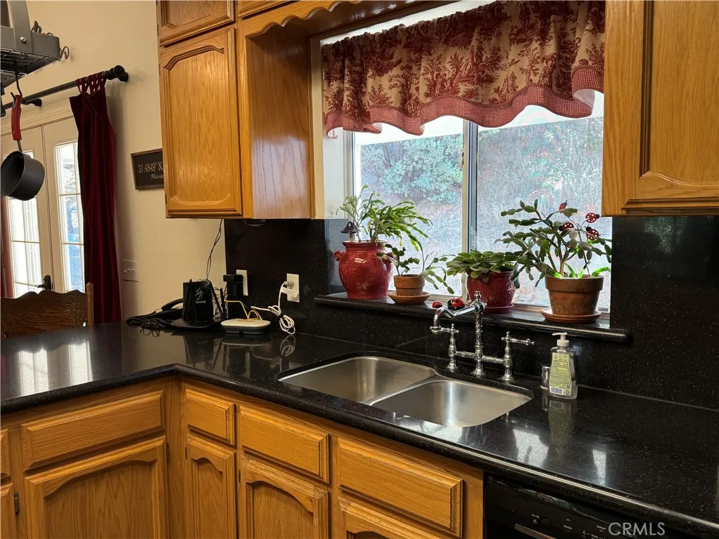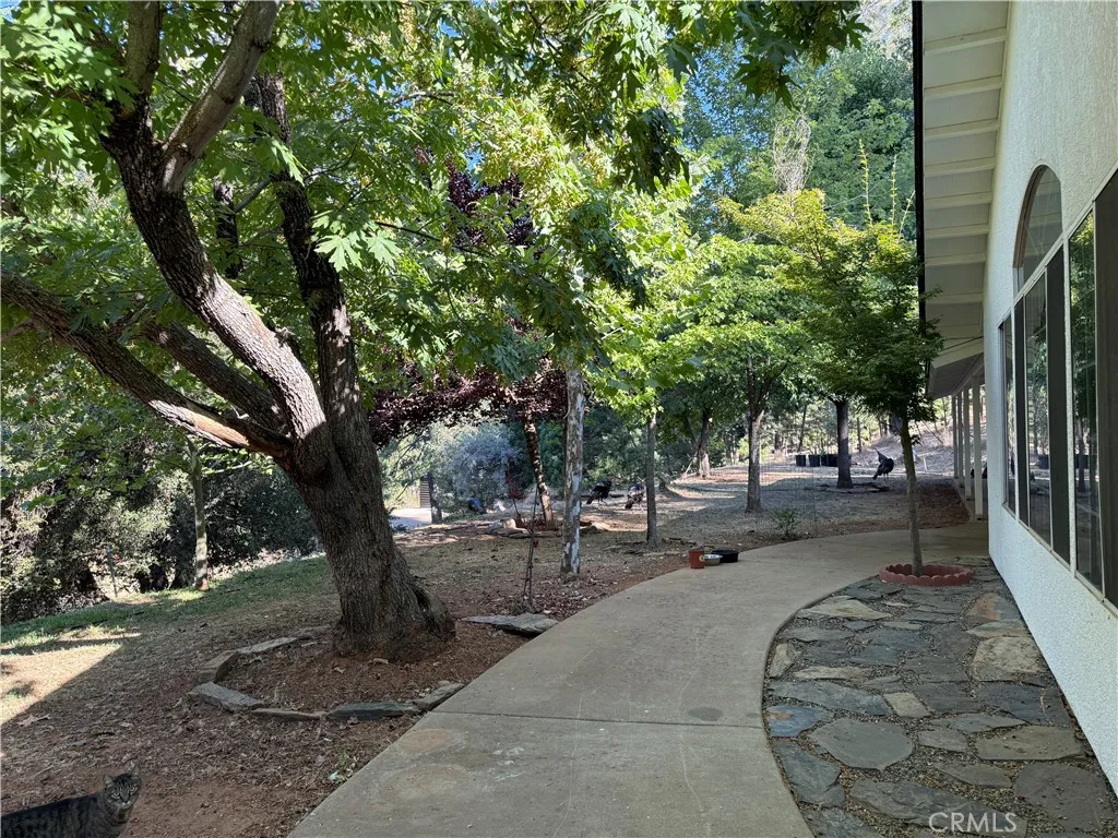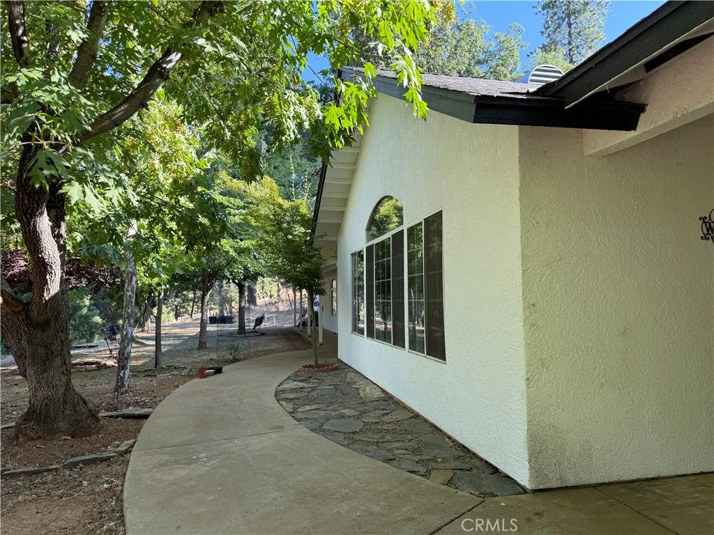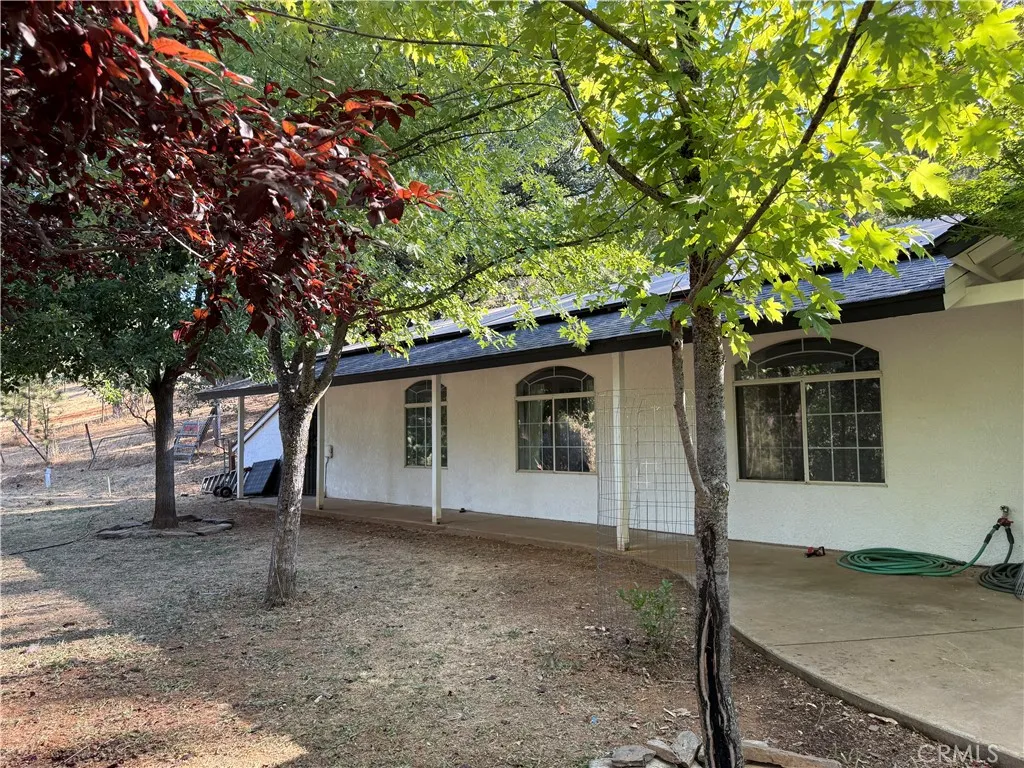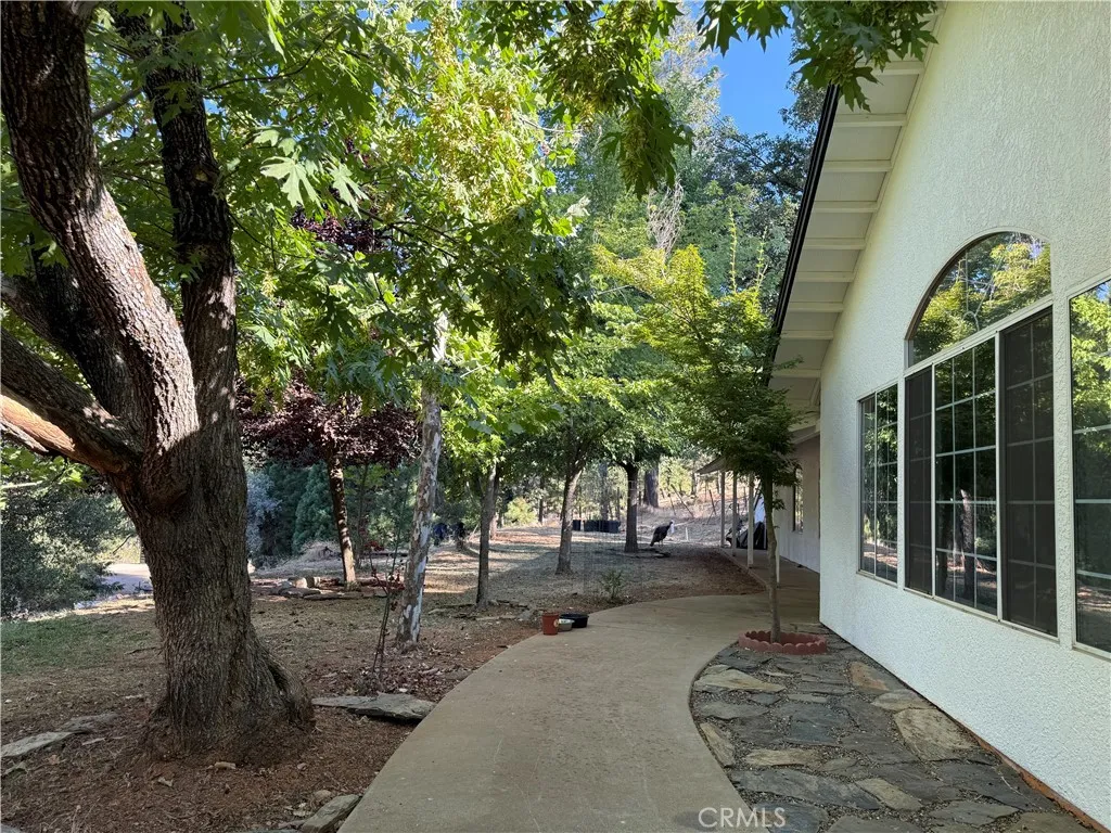 2 Homes on 6 + acres in the Pines, close to Yosemite. Main Home is 2006 large Western Home with 1,906 sq. ft., 2 bedrooms, an office, 3 bathrooms, inside laundry room, an attached garage, owned solar & a backup generator. Home is wonderfully shaded by a Big Leaf Maple & Sycamore trees. Beautiful custom kitchen features black Quartz countertops with matching appliances, custom pot rack, tile flooring, pantry, & propane cookstove. Nice open floorplan with gorgeous hardwood & tile floors. Master bedroom has 2 large walk in closets, 2 bathrooms with tile floors (one Full & one 3/4), & exterior access via French doors; Full bath has large jacuzzi tub & a step in shower. 3/4 bath has a pedestal sink & freestanding clawfoot tub. Additional Dwelling Unit is a 2002 Fleetwood manufactured home on permanent foundation; 960 sq. ft., 3 beds & 2 baths. In addition to all this, there is a 400 sq. ft. Storage/ Shop. For animal lovers, there is a fenced pasture for equines as well as an elaborate cattery built around the exterior of the home in the back & side yard.